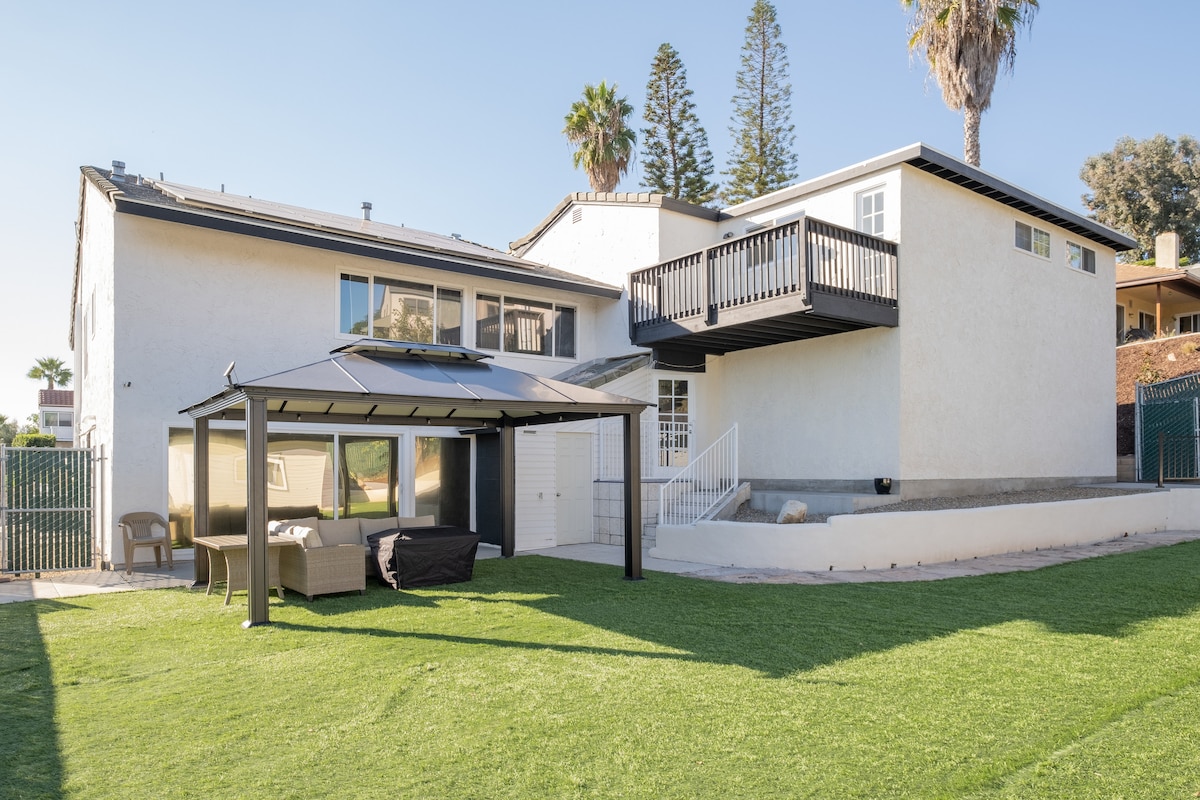 Gloednieuwe woning! Enorme tuin van Eden-stijl resorthuis met uitgestrekte outdoor entertainmentruimte en ruim open concept binnen, perfect voor grote gezinnen met kinderen en verantwoordelijke volwassenen. Bijgewerkt van boven naar beneden met alle nieuwe buiten- en binnenmeubelen, moderne upgrades in alle slaapkamers en gemeenschappelijke ruimtes. Centraal gelegen en op 20 minuten van het strand en alle topattracties van SD! 8 persoons hottub, sprankelend gas verwarmd zoutwaterzwembad en nieuwe buitenkeuken. Mis het niet!