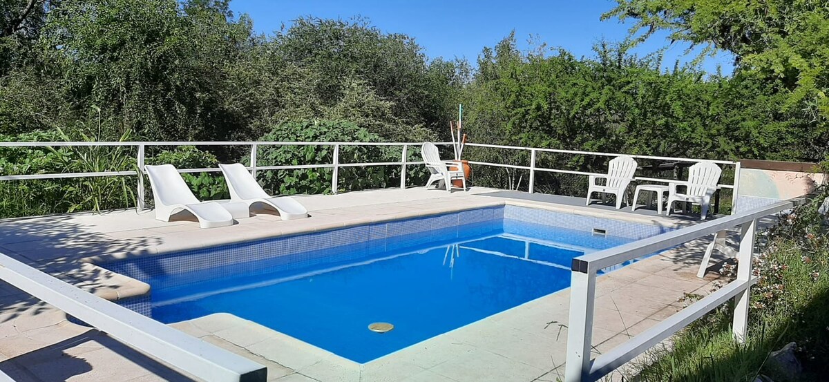 Dit prachtige landhuis met uitzicht op het Cordoba-gebergte is gelegen in het natuurreservaat Los Qeubrachitos in de stad Unquillo, Cabana. Het is gelegen op een terrein van 5000 vierkante meter op een privéterrein met beperkte toegang. Capaciteit voor 5 personen , 2 koepels, 2 volledige badkamers, grote woonkamer, eetkamer, keuken, vliegenrek met een chulengo, woonkamer met fauteuilbed en tv, wasruimte . Buiten 7x4 gevlogen zwembad en een groot dek van 42 m2.