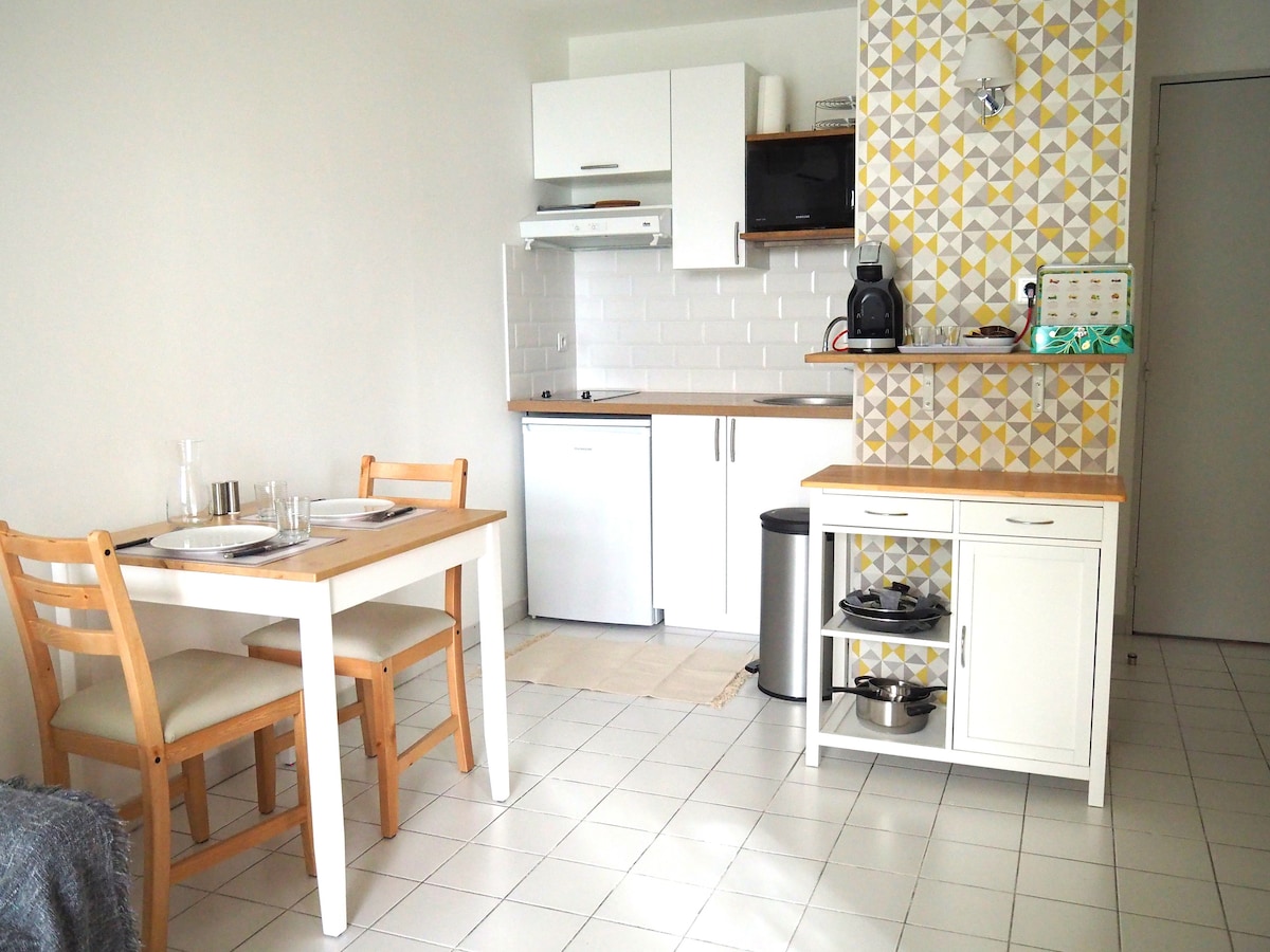 ☆Mooie studio met airconditioning op 2 minuten van het strand ☼ + parkeerplaats