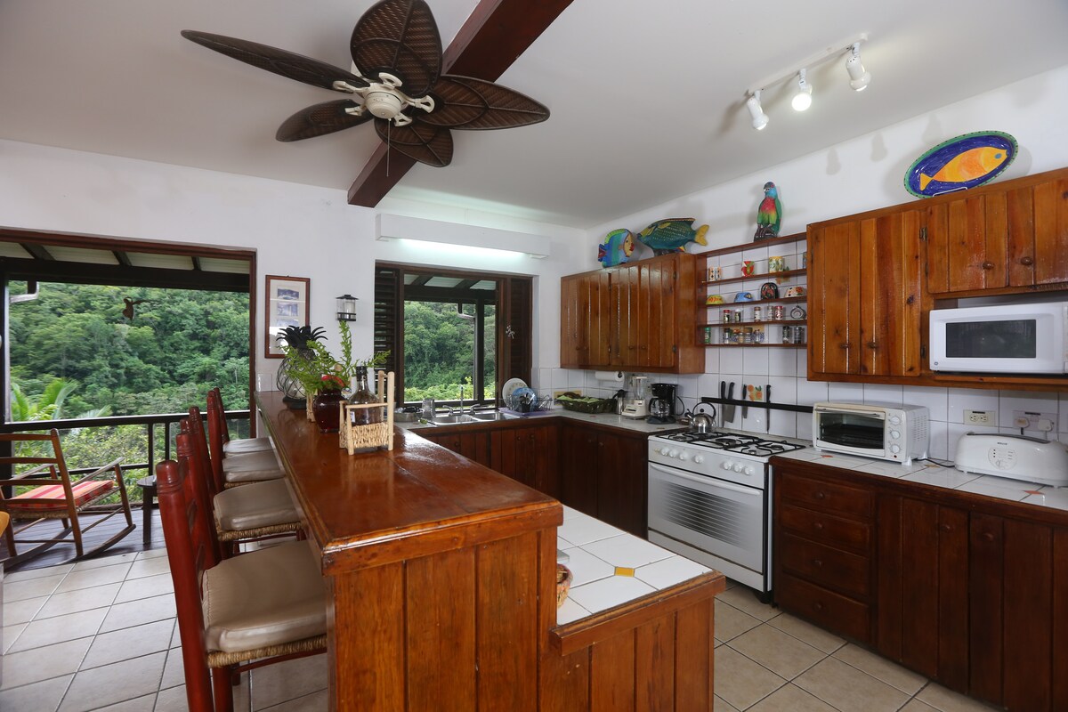 Geniet van de romantische sfeer van deze Canopy Hideaway, een uniek toevluchtsoord waar rustieke charme en modern comfort samenkomen. Geniet van een adembenemend uitzicht op de Caribische Zee en het naburige eiland . Dompel jezelf onder in de rust van wuivende bomen en de melodie van beukende golven. Laat de symfonie van de natuur van het zachte geritsel van bladeren tot het koor van vogelgezang je in rust rusten! Kom en ervaar een onvergetelijk toevluchtsoord in ons KaiZen TreeHouse .