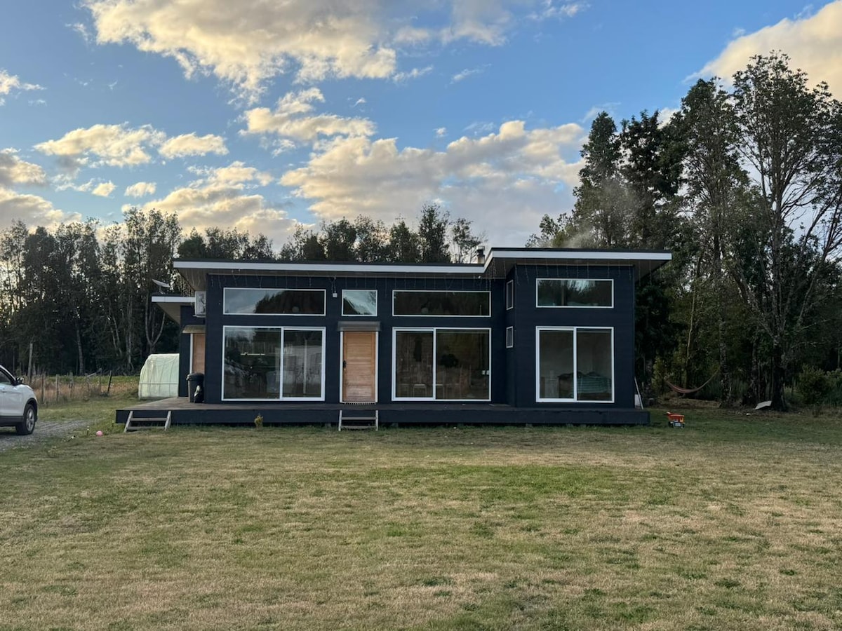 Cabañas nuevas y equipadas completamente, la cual tiene la comodidad necesaria para descansar y conocer la isla, ubicada en el corazón de chiloe, cuenta con una vista maravillosa y espectacular hacia la cordillera de los andes y archipiélago de chiloe. También zonas cercanas para trekking, running, nadar, andar en bicicleta y kayak.