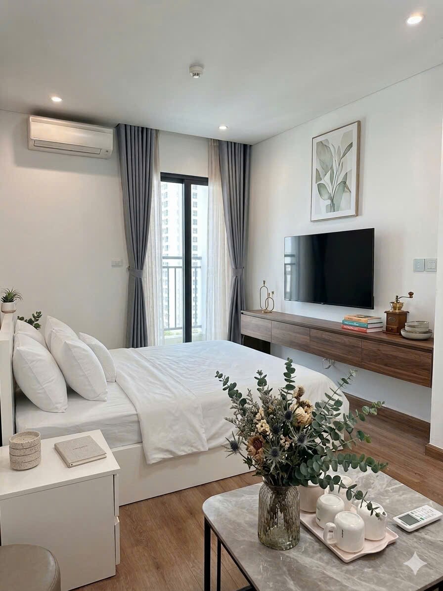 - Het belangrijkste hoogtepunt is de kamer met uitzicht op zee waar je 's ochtends koffie kunt drinken, de heldere zonsopgang kunt bekijken of kunt ontspannen met de romantische zonsondergang over de zee. - Het appartement bestaat uit 1 slaapkamer, woonkamer die de keuken verbindt en is geschikt voor een stel of klein gezin. Comfortabel meubilair: airconditioning, snelle wifi, smart-tv, fornuis,... brengen het gevoel van comfort zoals thuis, maar nog steeds de resortervaring voltooien. - De locatie ligt pal naast het strand – op slechts een paar minuten lopen, kun je al genieten van het helderblauwe water.