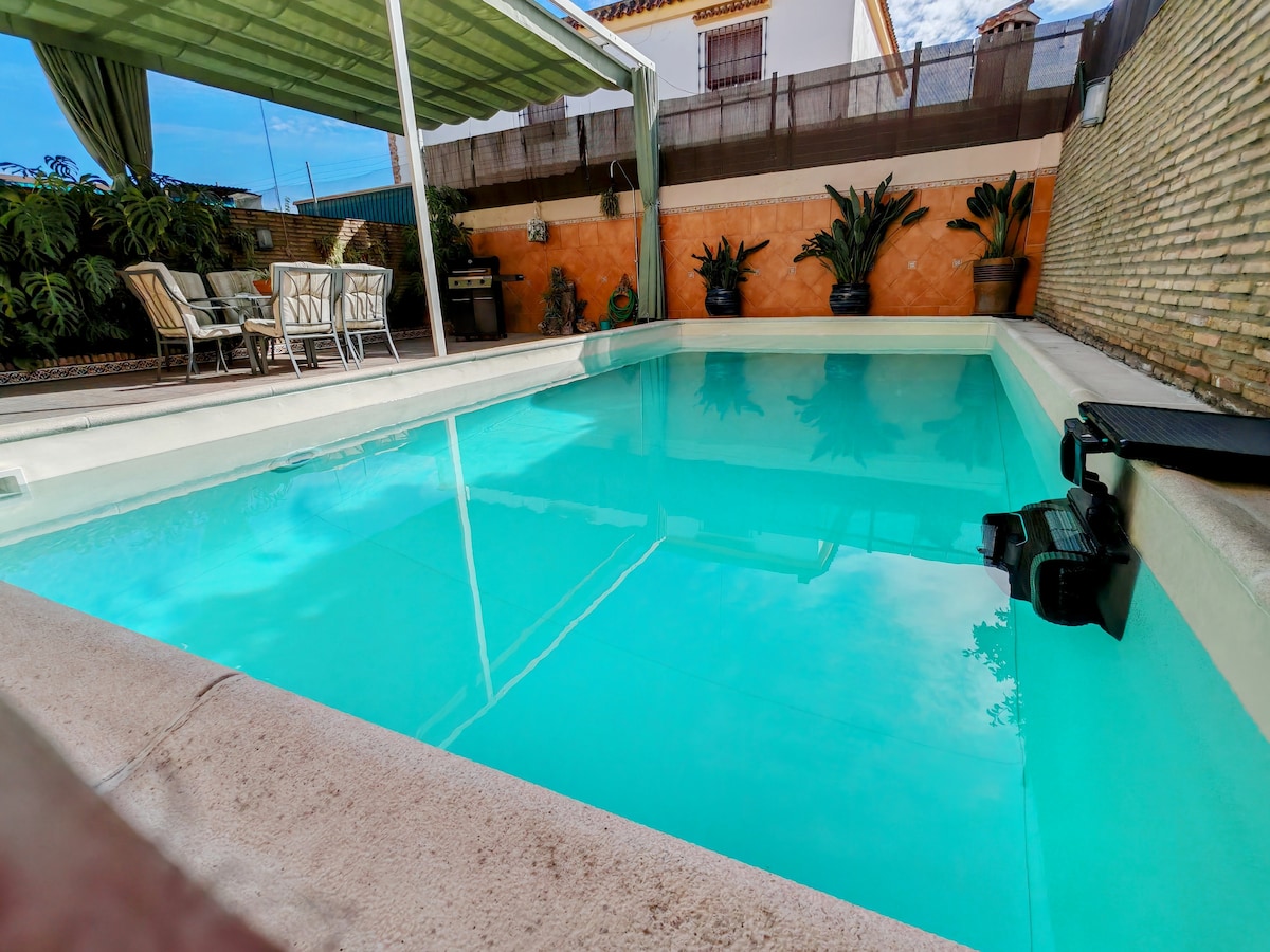 "Op een steenworp afstand van Sevilla", met name op 500 meter van het metrostation San Juan Alto, dat je in slechts 10 minuten bij Puerta de Jerez achterlaat! Het huis is zeer ruim opgezet en biedt plaats aan maximaal 8 personen. Koel af in je exclusieve zoutwaterzwembad (niet verwarmd) of ontspan op het zolderterras terwijl je dineert en naar muziek luistert op je hifi-systeem. Uitzicht op Sevilla!