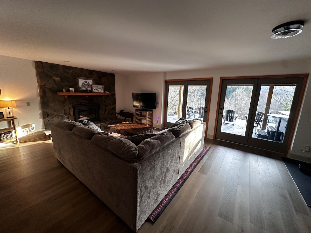 Located just two miles from the Village of Ellicottville, The Pines on Maples offers stunning views & a variety of amenities for relaxation and entertainment. Tucked away in the rolling hills of Western New York, this chalet features a large wood deck with a Weber grill & sitting area, as well as a walk-down path to an eight-person hot tub & an unilock fire pit with Adirondack chairs. State of the art Stuv indoor fireplace for cozy cabin days!