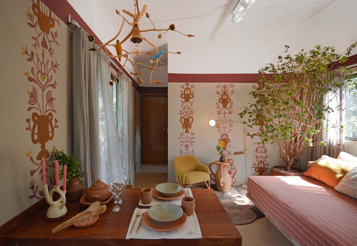 We geloven dat kunst ons kan raken en leven en leven kan inspireren. Bewogen door liefde, hij is de zoon van @casaaltachapada . Liefde voor kunst, design, architectuur en alle verbindingen die ze kunnen brengen. De schilderijen op de muren zijn een reis door de organische kenmerken en symbolen die de genegenheid verheerlijken. Levendige kleuren in dialoog met een gastvrije en zintuiglijke decoratie. Een unieke ervaring, allemaal in een huis midden in het Cerrado van Chapada dos Veadeiros met een ongelooflijk uitzicht op de bergen.