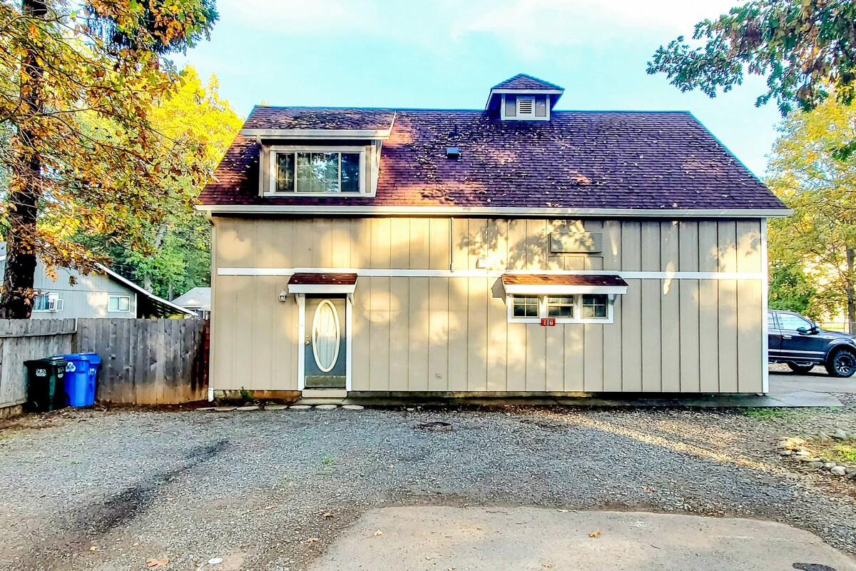 Onlangs bijgewerkte suite (met keuken) in een historische woning. Eigen ingang, ingericht met moderne smaakvolle stylings. Heeft een smart tv en een smart slot, allemaal verbonden met internet. Geen huisdieren. Zeer handig voor de I-5, ideaal voor zowel reizigers als verblijven van gemiddelde duur. Ideaal voor reizende verpleegkundigen. Neem contact met me op voor deals. Grants Pass en de omgeving is prachtig, gelegen aan de voet van de berg, en slechts een paar blokken naar het centrum. Bubbelbad en wasruimte zijn voor het gebruik van gasten.
