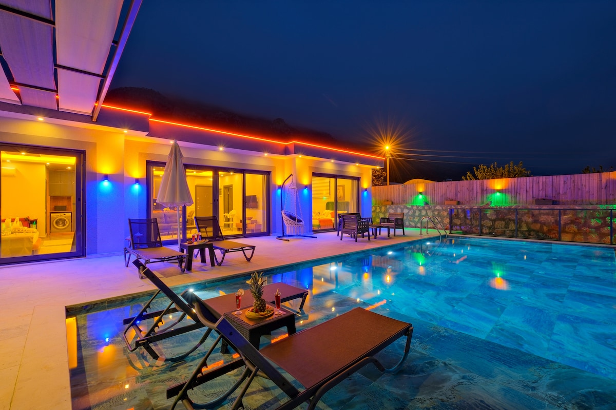 Ontspan en kom tot rust in deze vredige, stijlvolle ruimte. Onze villa met een warm zwembad ontworpen voor onze huwelijksreis koppels is binnen. Het is gelegen in de wijk Üzümlü van Kalkan, ik denk dat de auto een must is om te verblijven 🙏