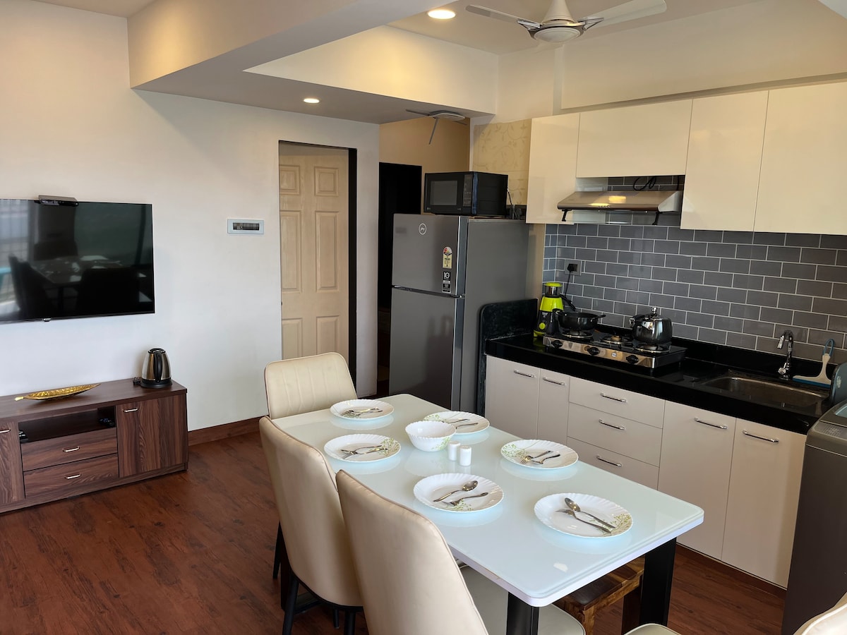 Ontspan met je hele gezin in deze rustige accommodatie. Geniet van een volledig uitgeruste keuken met voorzieningen zoals een wasmachine, magnetronoven en een gasaansluiting in een modulaire keuken. Slechts 5 minuten lopen naar Dmart, 2 minuten naar het treinstation van CBD Belapur en een korte wandeling naar premium restaurants, pubs, KFC, McDonald 's, winkelcentra, Starbucks, Barbeque Nation en nog veel meer.