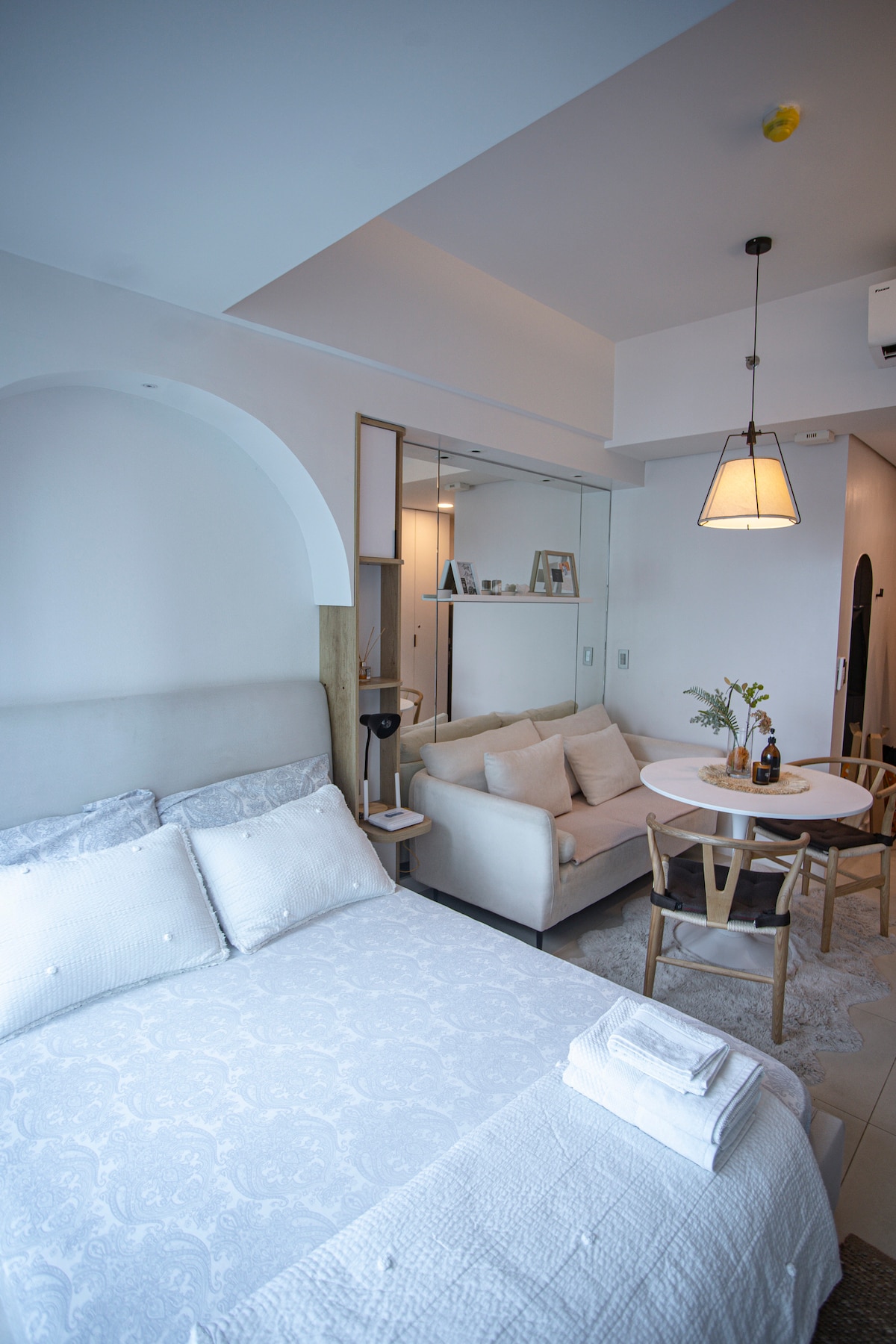Volledig ingericht appartement met een minimalistisch ontwerp om een ruime, ontspannende, comfortabele, gezellige, romantische en huiselijke omgeving voor onze gasten te inspireren. Dit high-end condo ligt in het Cebu Business Park en biedt een rustige, veilige en de perfecte locatie om te winkelen, dineren, gezinsvriendelijke activiteiten, nachtleven en ontspanning. Vergeet ook niet om jezelf onder te dompelen met een 360 graden uitzicht op de stad!