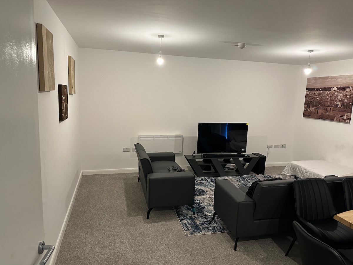 Modern appartement met 2 bedden in de beste centrale locatie van Bedford - op een steenworp afstand van de Embankment, het stadscentrum, Bedford Blues Rugby Club & Bedford Hospital. Perfect voor aannemers, professionals, verhuizers en Universal Studios-bemanning. Gemakkelijk toegang tot het treinstation Bedford en de A6. Supersnelle wifi, 50inch smart-tv, koffiezetapparaat, volledige keuken, handdoeken, beddengoed, zeep. Omheinde parkeerplaats, lift, bel de deurbel. Rustig, stijlvol en veilig. Hoofdgast 21+. Alle gasten van 18 jaar en ouder moeten een geldig legitimatiebewijs met foto verstrekken.