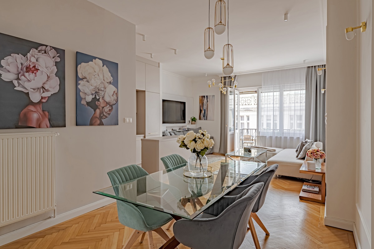 Luxe in het hart van Boedapest, uitgerust met bekende designmeubels en eersteklas interieurmateriaal. Dit prachtige appartement van 150 m² met een geweldig uitzicht over het Budapest Eye is een meesterwerk van interieurontwerp. Het appartement ligt op een steenworp afstand van heerlijke restaurants, bars en het nachtleven van Budapester. Het appartement is volledig gerestaureerd en opgewaardeerd op een zeer moderne manier en uitgerust met een 86'' tv en Sonos 7,1 Sourround System, waardoor een zeer eenvoudige verbinding met tablets en telefoons mogelijk is.