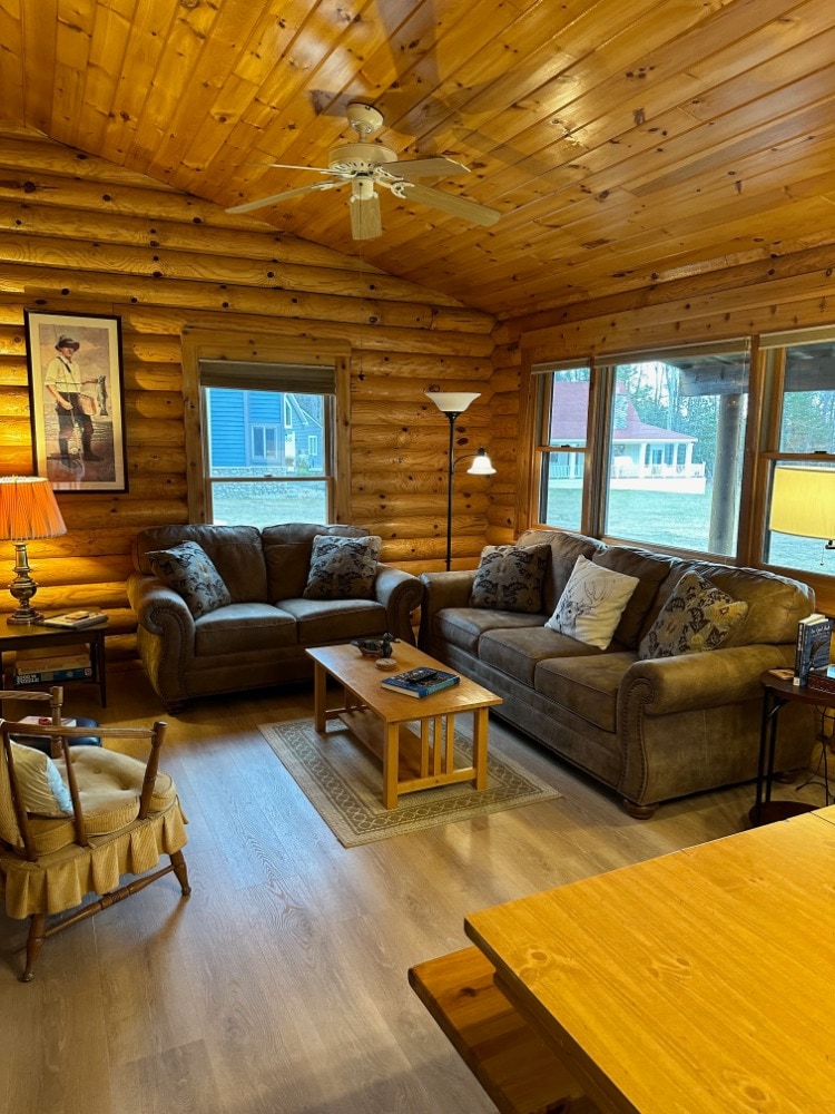 This cozy cabin, is tucked away on the lake in a small town of Ellsworth. Private single story cabin nestled into the woods with a beautiful hiking trail that leads you to the personal lake front, for swimming, kayaking and even ice fishing. Perfect cabin for a getaway or stay with your family. Incredible views of six mile lake, and just a small drive into town for activities to do like beach access cozy home town restaurants and fun for families. Nearby snowmobile trails, so bring your sled!