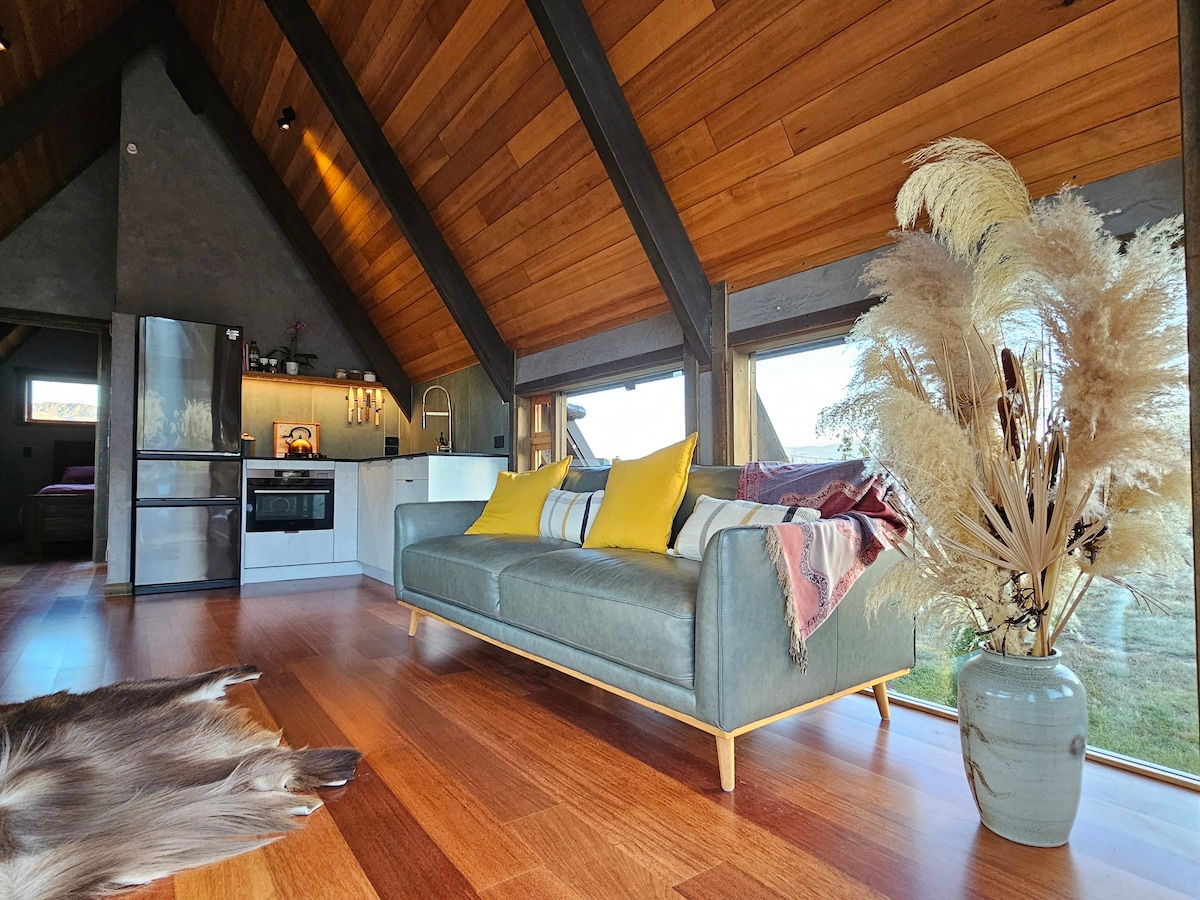 Een schilderachtig A-frame genesteld in de Hawea-gebergte. Verscholen achter inheemse beplanting met een panoramisch uitzicht op de omliggende bergen. Deze privéretraite is de perfecte locatie voor een ontspannen uitje. Geniet van een drankje of twee in het houtgestookte bubbelbad terwijl je geniet van de sterren hierboven. Dit uniek vormgegeven huis beschikt over een slaapkamer, een badkamer en een volledige keuken met binnen- en buiteneetkamer.