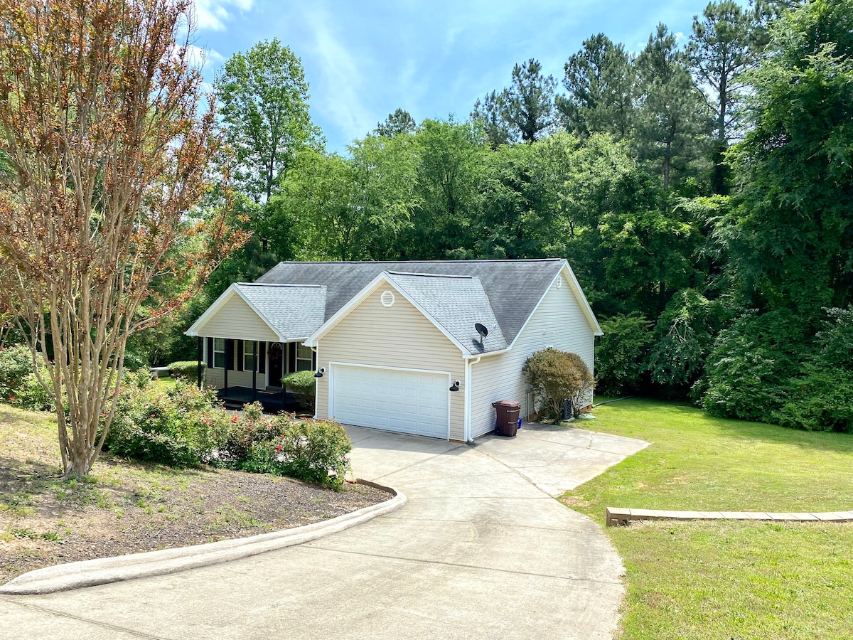 Kom tot rust en opfrissen in een rustige omgeving. Ontspan en ontspan op het voorportaal. Ervaar rust als de zon ondergaat en de kikkers beginnen te kraken. Je bent van harte welkom om een lijn in de vijver te werpen om je vaardigheid te proberen in het vissen. Vishengels worden niet verstrekt. Het huisje is privé, maar heeft nog steeds gemak van Walmart en Oconee Memorial Hospital op 5 minuten rijden. We zijn 13 mijl van Clemson verwijderd.