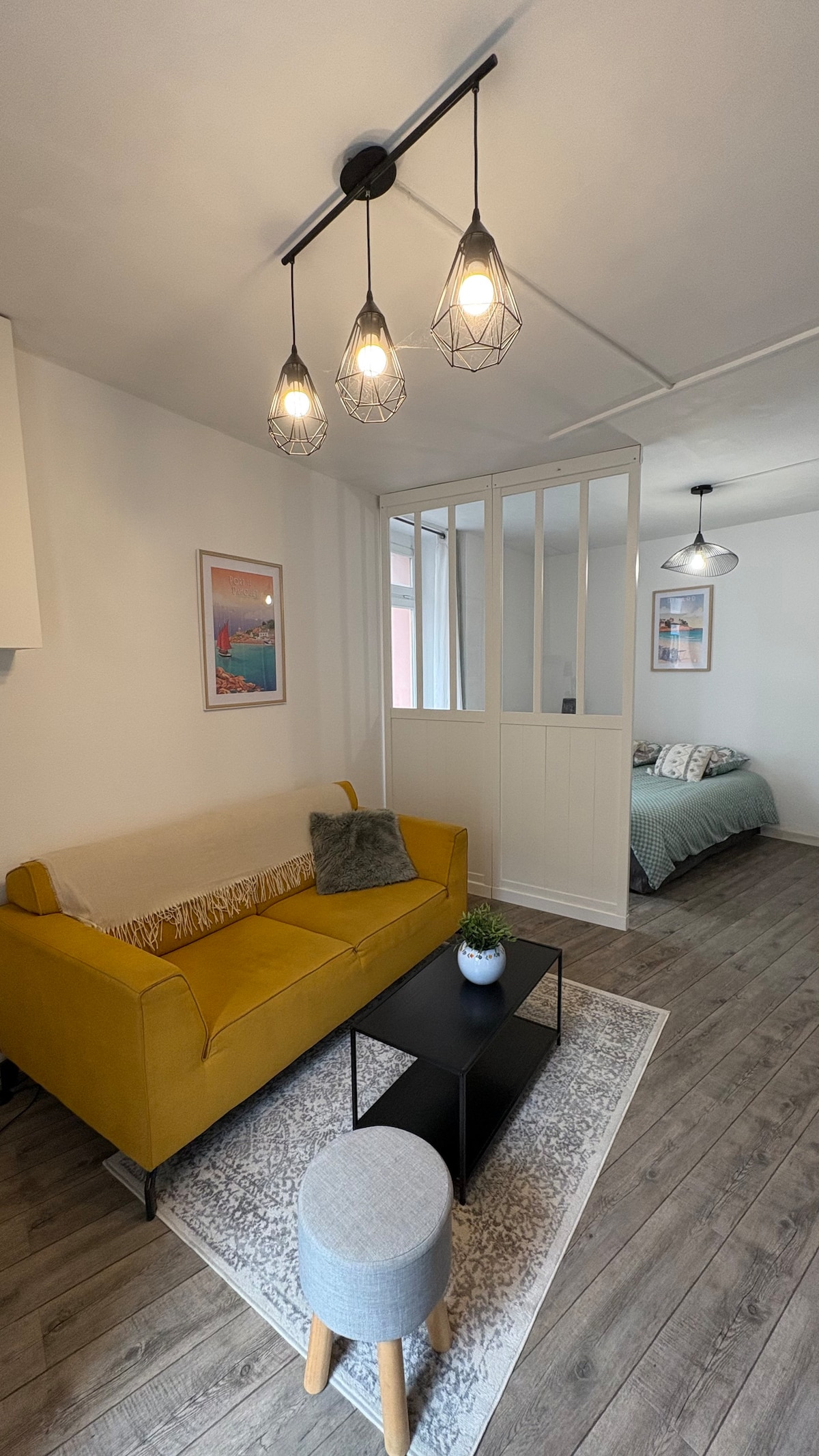 Ideaal gelegen voor de deur van de oude stad. Ruime T2 van 55 m2 met een mooie woonkamer van 35 m2 met uitzicht op een balkon van 7 m2. Een volledig uitgeruste keuken met beddengoed van hoge kwaliteit (queensize bed 160x200 en recente high-end snelle bank met een 140x190 bed). Werkplek en zeer snel internet. 2 eigen en beveiligde parkeerplaatsen gemakkelijk te bereiken ( elk type voertuig). Winkels in de buurt ( Lidl op 50 meter ).