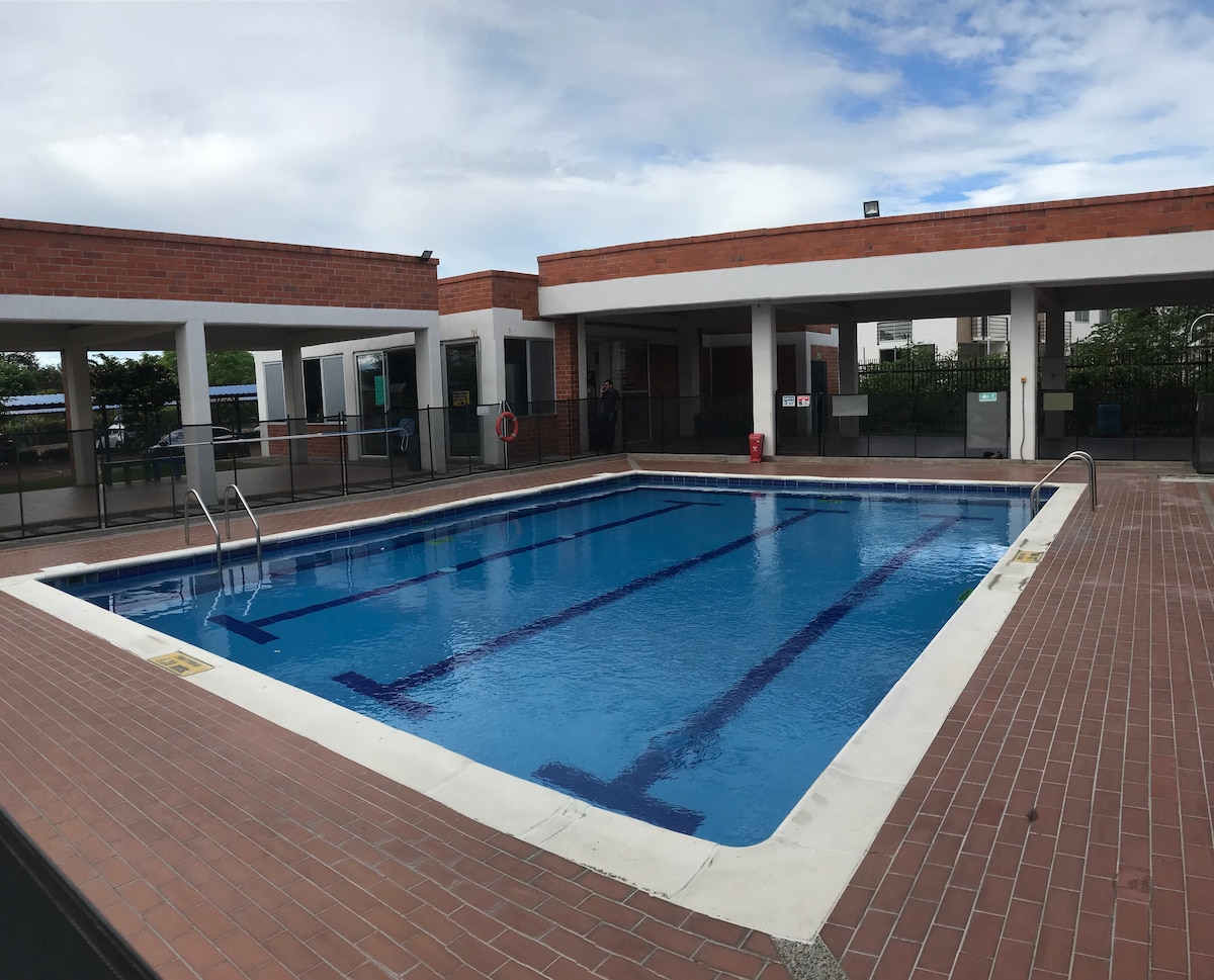 Vijfsterrenervaring met deze centraal gelegen nieuwe flat. 🏝️ - Maximaal 4 gasten met 1 tweepersoonsbed en 2 eenpersoonsbedden (Of vier eenpersoonsbedden ) Beste locatie: - 5 minuten van de luchthaven - Naast twee winkelcentra. - Historisch centrum op slechts 10 minuten - Uitgang naar de woestijn van Tatacoa. - De beroemde San Pedro beurzen liggen ook op korte 10 minuten. Clubhuis: - Het beste in de stad - Parkeerplaats inbegrepen - zwembad - Terras met uitzicht op de stad - barbecue FITNESSRUIMTE