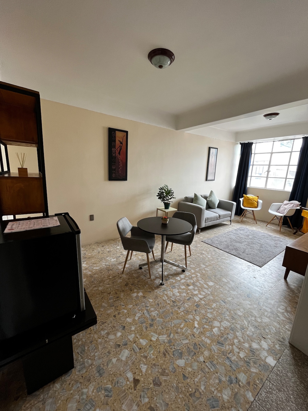 Sinds 2018 betekent Un Lugar Tuyo en Cdmx Total Trust and Exclusivity met je familie of vrienden; comfort, netheid, nul stadslawaai, onafhankelijkheid, rust, veiligheid en rust. Het bestaat uit een kleine eetkamer en keuken, badkamer en slaapkamer met 2 bedden + 1 eenpersoonsbed, in een condo. Gelegen op de eerste verdieping. Met toegang tot Metrobus, Metro Bellas Artes, 12 minuten van de Zócalo. Je lange verblijf zal comfortabeler zijn met wekelijkse en maandelijkse kortingen. Verwelkom de wereld!