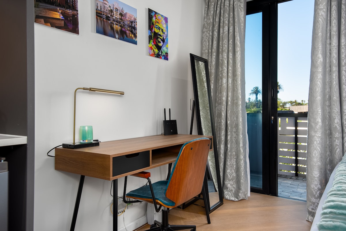 Maak een zonnige ochtendwandeling naar de Sea Point promenade voor een verfrissende koffie en wat mensen kijken. Kruip na een lange dag lekker bijeen op de bank in deze open studio en bewonder het adembenemende uitzicht op de bergen van Signal Hill en Lions Head. Het appartement heeft een beveiligde off-street parkeerplaats en een omvormer, zodat je lichten en wifi hebt wanneer de ruimte een lastafgifte heeft. 24-uurs portiers om je altijd van harte welkom te heten en een wekelijkse schoonmaak is inbegrepen voor langere verblijven.