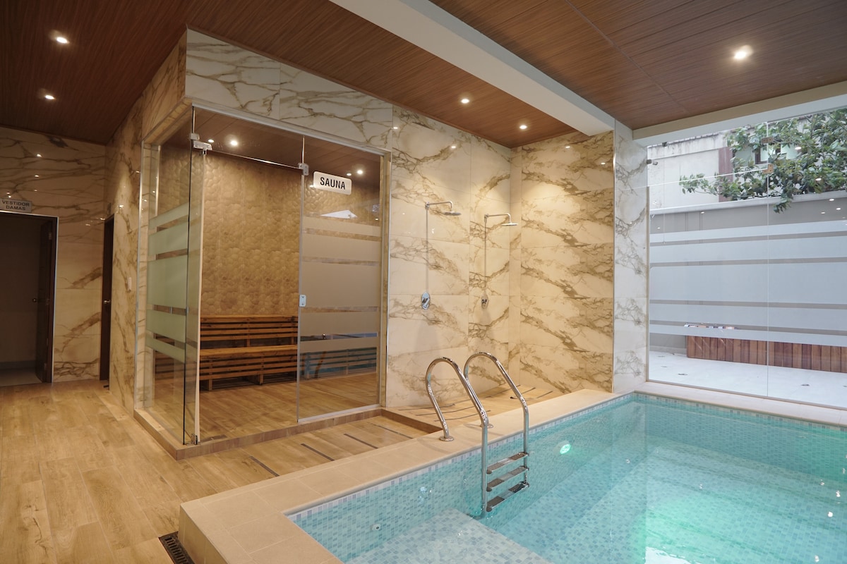 Descansa y disfruta en este moderno monoambiente, diseñado para brindarte confort y tranquilidad. Ubicado en una zona privilegiada, este espacio cuenta con todas las comodidades necesarias, incluyendo Smart TV, WiFi de alta velocidad, lavadora propia. Además, tendrás acceso a piscina (previa reserva), jacuzzi y sauna (pago por uso). Perfecto para viajes de negocios o escapadas a la ciudad. Disponible de parqueos para alquilar en el edificio.