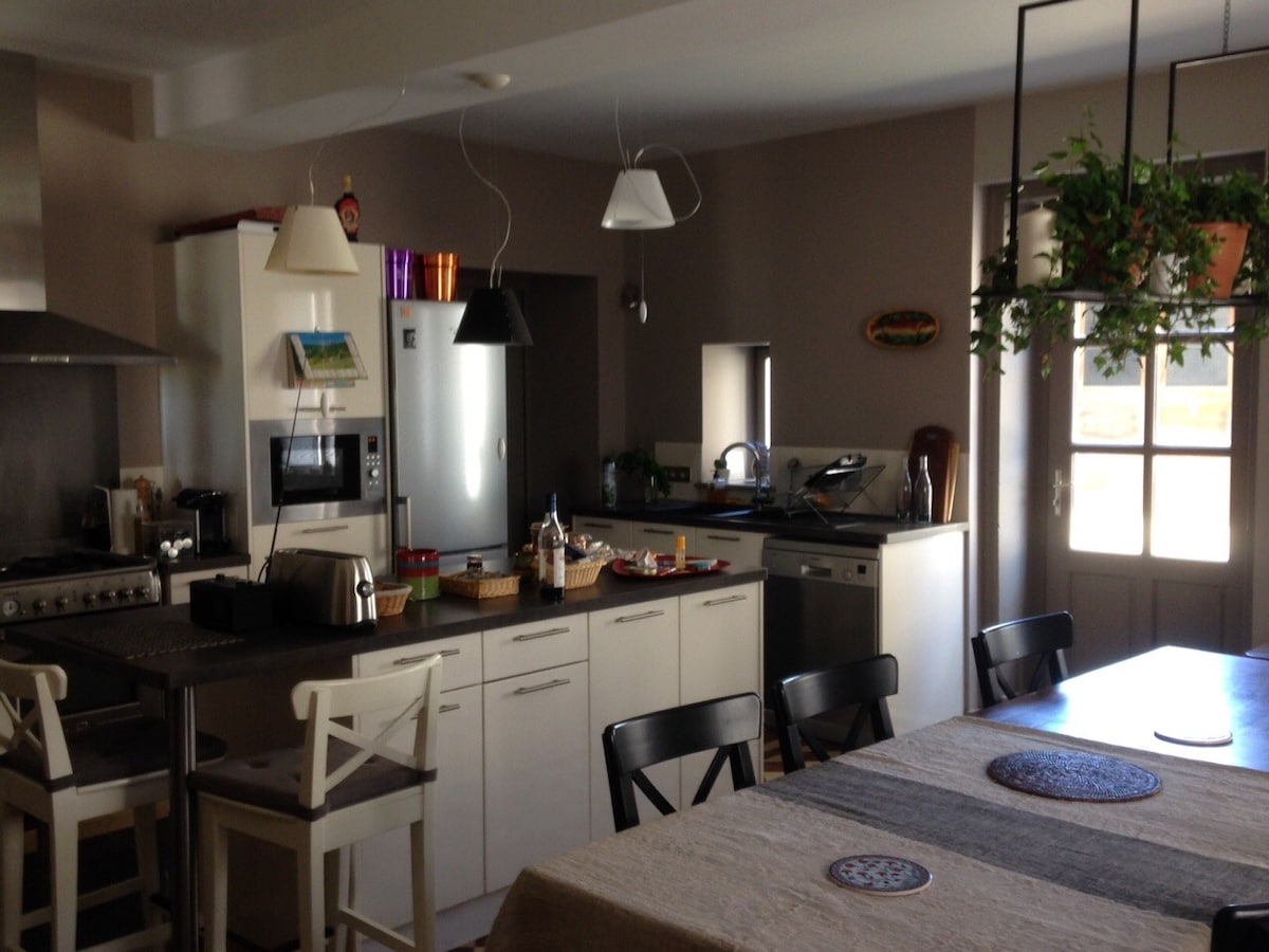 Dit rustige huis biedt een ontspannen verblijf voor het hele gezin. in het hart van de Beaujolais wijngaard, 10 km van de A6. 2 slaapkamer accommodatie, een badkamer , plus een douche en een toilet onafhankelijk van de badkamer. een keuken en een grote kamer ( woonkamer en eetkamer), buiten met tuinmeubilair. Koffie, thee, chocolade capsules zijn tot uw beschikking.