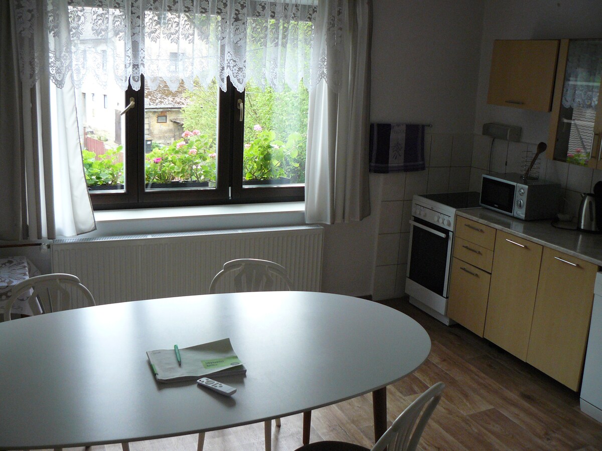 Ruim appartement met twee slaapkamers op de bovenste verdieping van het familiehuis met de tuin, met eigen ingang, geweldige locatie dicht bij het kasteel. Volledig uitgeruste keuken. Parkeren in de tuin, gratis gebruik van de tuin. Geweldig voor de familievakantie en ook voor zakenreizen. Ruim appartement met twee slaapkamers op de 1e verdieping van het huis met een eigen ingang, geweldige locatie vlakbij het kasteel. Volledig uitgeruste keuken. Parkeerplaats in de tuin/tuin gebruik. Ideaal voor familievakanties, maar ook voor zakenreizen.