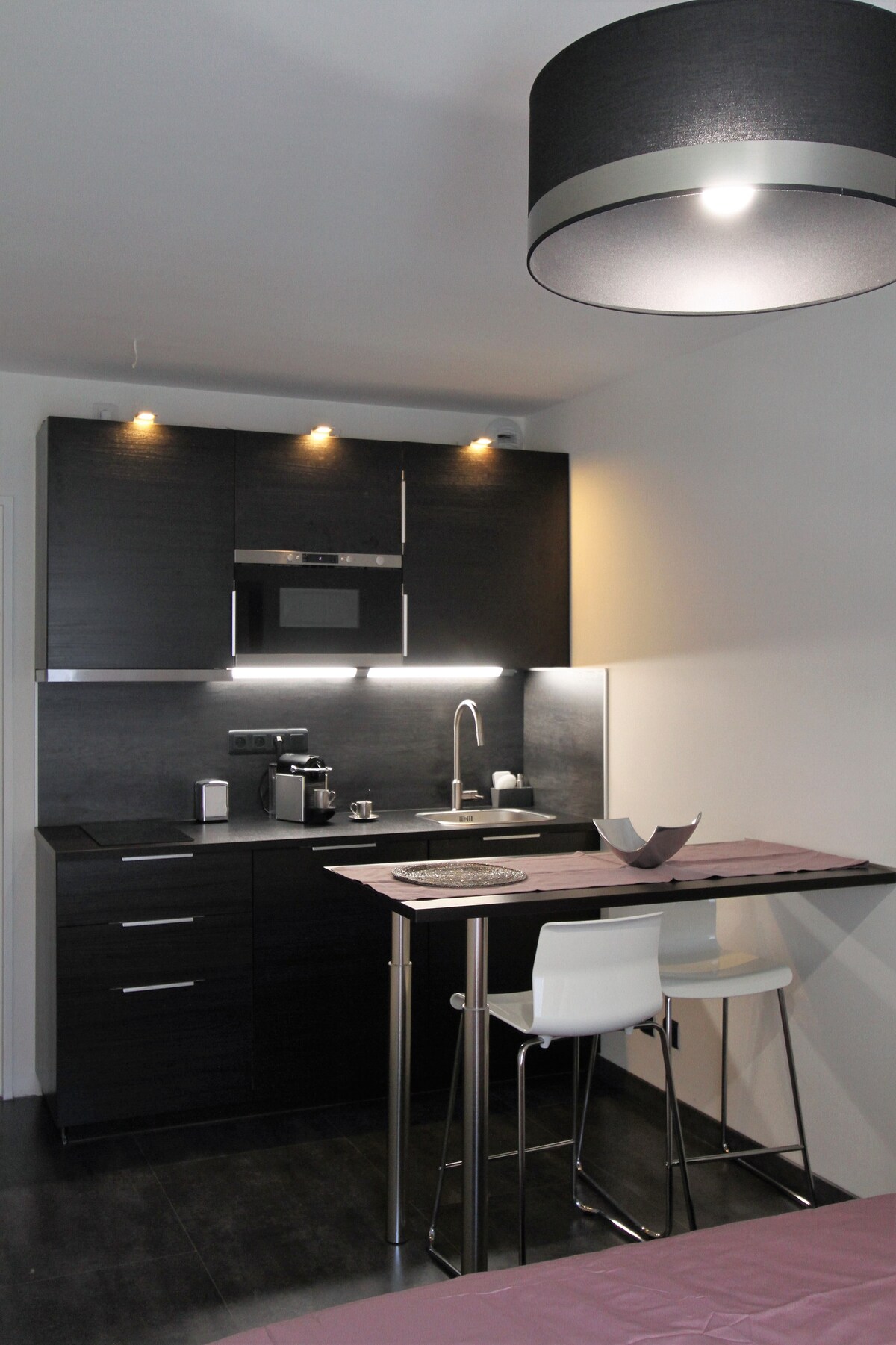 Karaktervolle loft gelegen in een binnenplaats op Place de la Mairie, in het hart van het historische centrum. Dicht bij terrassen, markten en vele winkels in de buurt. Het combineert de charme van het oude met zijn prachtige plafondhoogtes, lijstwerk en rode tegelvloer met een eigentijdse inrichting en heeft alle voorzieningen. Perfecte locatie om de Cours Mirabeau, Le Pavillon Vendômes, de Thermes Sexius en de typische steegjes van de stad te voet te verkennen.