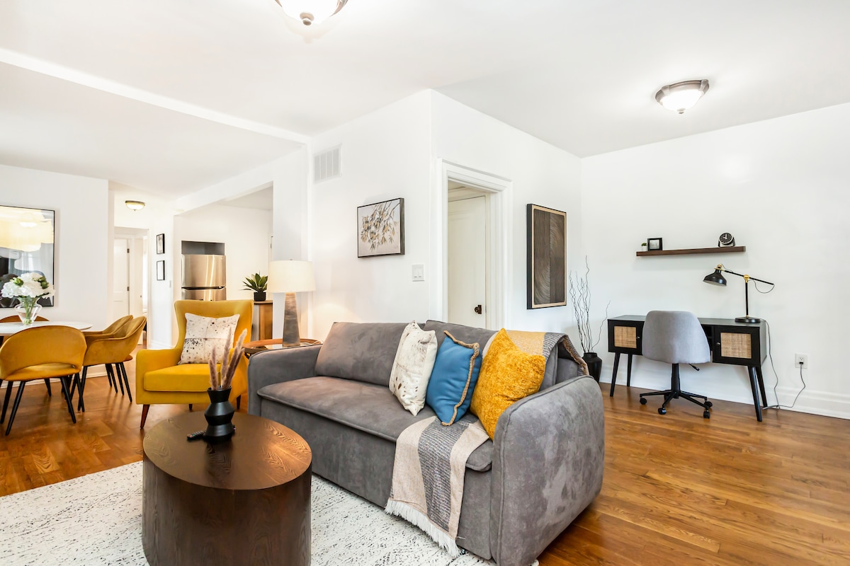 Ontspan in dit onlangs gerenoveerde, gezellige en ruime appartement met één slaapkamer, op slechts 5 rijden van Fairview Mall. Woon-werkverkeer is een fluitje van een cent met snelle toegang tot de belangrijkste snelwegen, TTC, York Region Transit en Don Mills Station. Gunstig gelegen in de buurt van winkels, restaurants en LCBO - het is gemakkelijk toegang tot alles wat je nodig hebt! Of je nu op bezoek bent voor zaken of vrije tijd, je zult genieten van het comfort van een volledig uitgeruste ruimte met een serene sfeer, ideaal voor ontspanning na een dag vol verkenning van de stad.