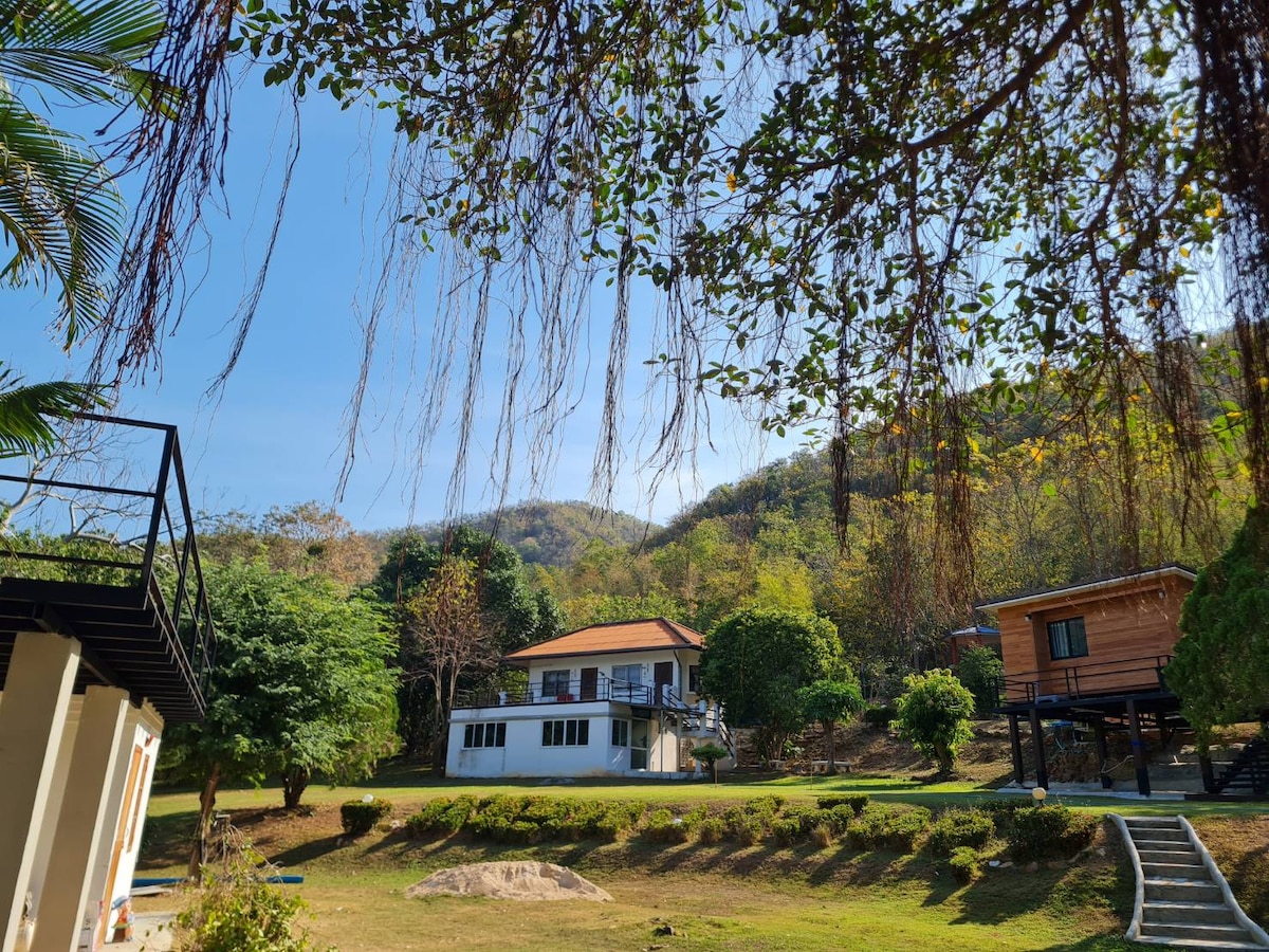 This charming 25-year-old house offers stunning views of majestic mountains. It features a spacious balcony complete with an indoor cooking area. The accommodation includes one queen bed for two people, as well as a room with twin beds with air-con. It is located 2.5 hours from Bangkok and 50 minutes from Hua Hin. Driving a car/scooter is a convenient way to get around ( you can rent from HauHin). For volunteers working for WFFT, you will get a 10% discount and be reimbursed in Thai baht.
