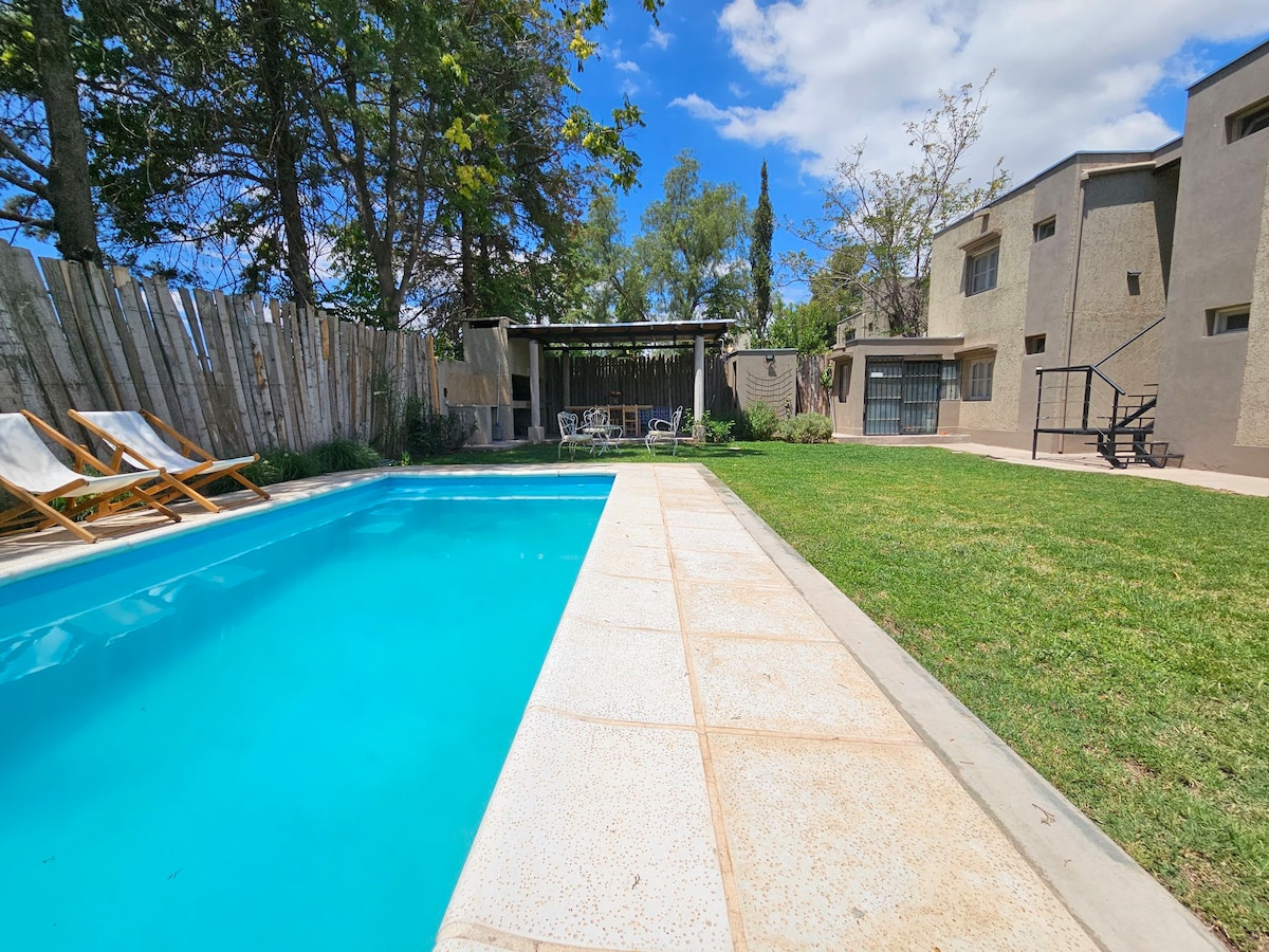 Een unieke plek. Een ruimte om volledig te ervaren. 13 km van de stad Mendoza en binnen het circuit "Wine Roads". Met een eigen uitgang, exclusieve overdekte garage, uitstekende wifi, een queensize bed, eigen badkamer, tv, koelkast, elektrische oven, magnetron, waterkoker, beddengoed en badlinnen en zwembadhanddoeken. We hebben ook een split-screen tv en een kluisje. We blijven comfort en rust toevoegen om je verblijf in onze ruimte onvergetelijk te maken.