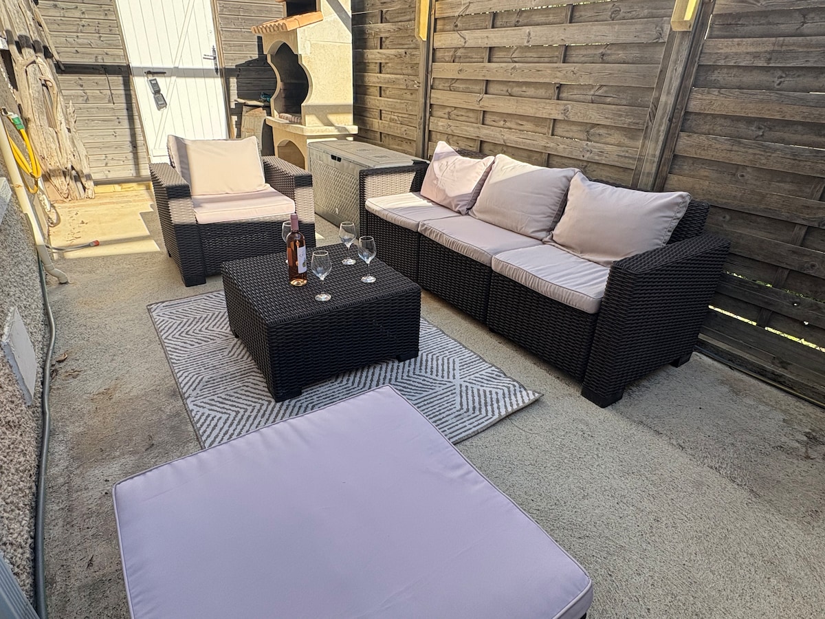 Moet veranderen en ontsnappen, kom de chalets in Gruissan Plage ontdekken Huisjesbasis inclusief:koelkast , tassimo koffiezetapparaat, filterkoffiezetapparaat,magnetron, gootsteen, waterkoker, kookplaat ... Badkamer: een inloopdouche, toilet , handwasser, haardroger Slaapkamer: 140 tweepersoonsbed,tv , airco, wifi , Zomerkeuken: gietijzeren plancha Tafel en stoelen Een ontspanningsruimte met overdekt tuinmeubilair, hangmat gratis parkeren