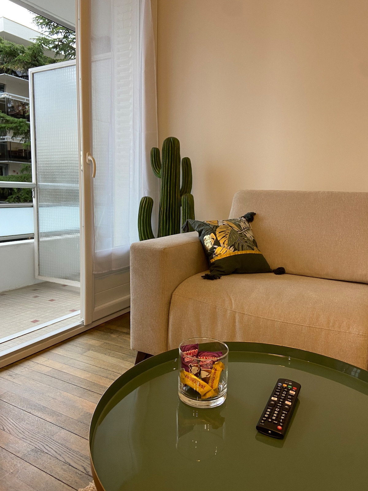 Echte 2 kamers volledig gerenoveerd. Het lichte appartement van 38 m2, toegankelijk via een trap van ongeveer vijftien treden, bestaat uit een volledig uitgeruste keuken die open is naar de woonkamer en eethoek. De woonkamer heeft een tv. De accommodatie heeft een echte aparte slaapkamer (queensize matras 160x200) met een kleine kledingkast. Badkamer met douche en verlichte spiegel + elektrische verwarming. Apart toilet. Nespresso-koffiezetapparaat, 2 gratis pads.