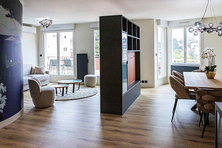 Goed gelegen, functioneel en goed ingedeeld, het is een gegarandeerde favoriet. Ideaal voor zakenreizen of ontspannende uitstapjes, stelletjes of solo. Onze 45m2 bevindt zich op de 3e verdieping met lift, onderaan de gang. Dit appartement is zeer licht, gerenoveerd en zorgvuldig ingericht appartement. De slaapkamer heeft een kleedkamer en een groot bureau van 2,8 m. Je hebt ook een eigen parkeerplaats achter de woning, evenals een groot terras.