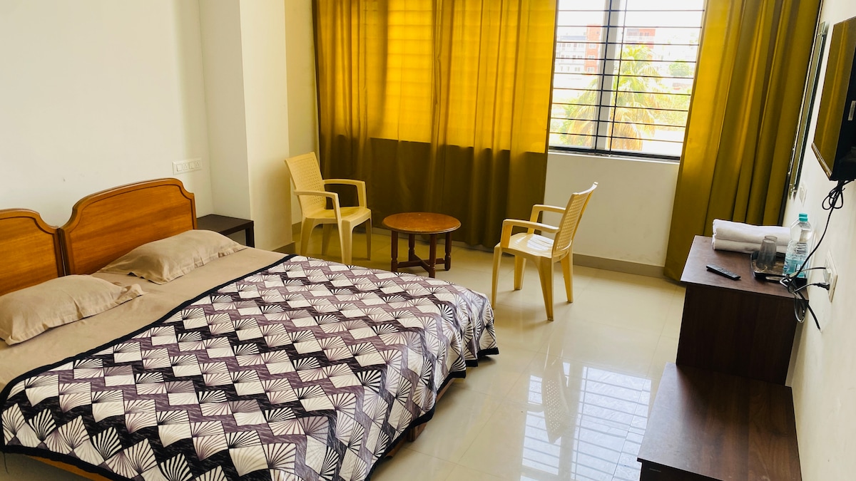 Enjoy a relaxing stay in our well-designed Deluxe AC Room, perfect for business and short visits. The room features a comfortable bed, air conditioning, 24-hour hot water, free WiFi, and a clean attached bathroom. Ideal for guests looking for comfort, cleanliness, and convenience in a peaceful location.