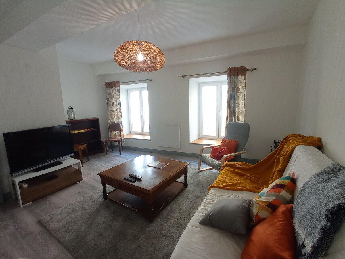 Gelegen in het hart van het prachtige natuurpark Livradois Forez. Deze rustige plek biedt alle gemakken die je nodig hebt om te rusten, te verzamelen of je batterijen op te laden voor gezinnen of vriendengroepen. De accommodatie is: ⭐ Een grote woonkamer ⭐ Een slaapkamer met een bed van 160 cm ⭐ Een slaapkamer met een bed 160 cm ⭐ Een slaapkamer met 4 slaapplaatsen 90cms ⭐ Eén kamer met bed van 140 cm, tv... Een woonkamer met volledig uitgeruste keuken, open haard en bank