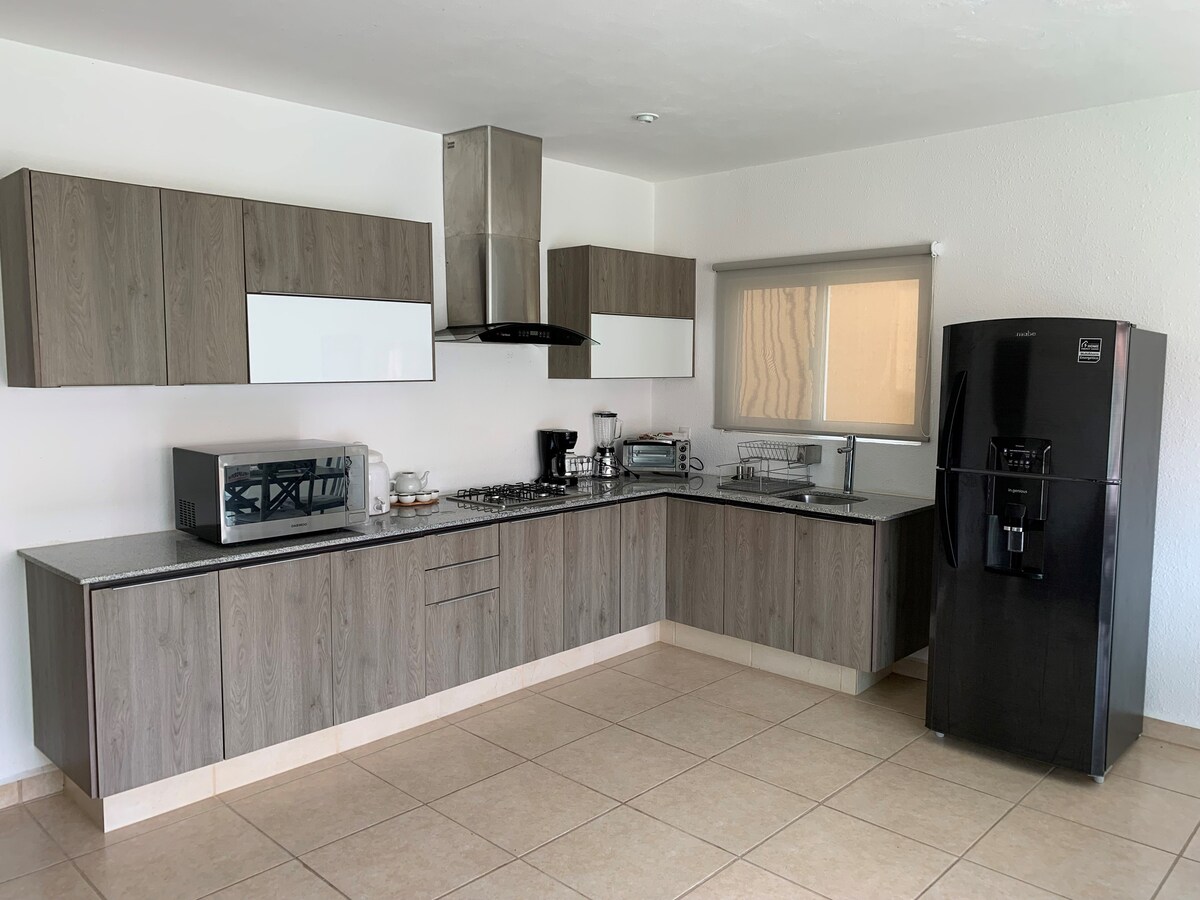 Coto privado un espacio único en confort donde la prioridad es tu descanso con seguridad 24/7. Cerca del aeropuerto de Guadalajara, CUtonala, arena VFG y el hospital civil nuevo ✈️ 15 min del aeropuerto de GDL ⛰️25 min arena VFG 🚌 20 min a la central nueva camionera 🌊 45 min a la laguna de Chapala 🏥 5 min del hospital civil oriente Disfruta de un espacio moderno y equipado, ideal para parejas o familias de hasta 5 integrantes.