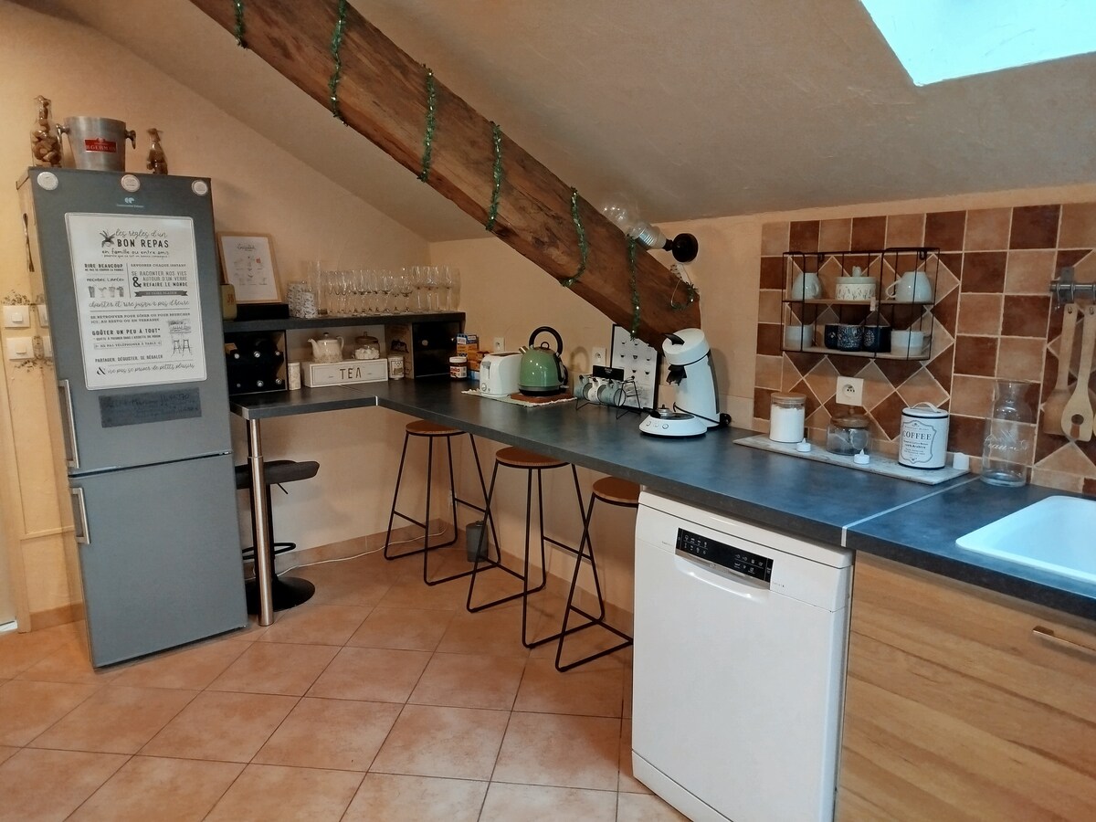 Kom tot rust in deze warme en lichte woning die volledig is gerenoveerd en gerenoveerd! Je zult haar charme en rust waarderen. Je hebt een slaapkamer en ook een slaapbank die geschikt is voor kinderen om als stel of gezin te komen, we hebben ook een babybedje en kinderstoel op aanvraag. Deze accommodatie is gevestigd in 50 meter van een supermarkt. We hebben een discrete prive parkeerplaats. De ruimte dient schoongemaakt te worden.