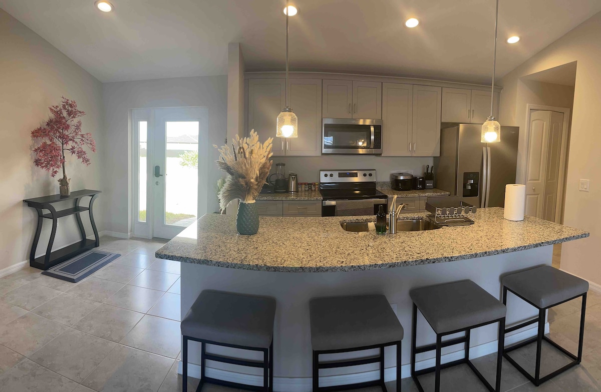 Je volgende retraite naar het paradijs in Florida zou Casa Blu moeten zijn met zijn eigen zwembad en serene achtertuin. Het ligt op slechts enkele minuten van stranden, restaurants en parken. Laat de stress van het dagelijks leven wegsmelten terwijl je in het zoutwaterzwembad drijft, margarita's drinkt en luistert naar Jimmy Buffett die "It's Five O'Clock Somewhere" zingt De indeling op één verdieping, comfortabele slaapkamers met eigen badkamers wachten op je. Snelle wifi, smart-tv's en volledig uitgeruste keuken. Alles is bedekt, van strandspullen tot een pack 'n play.