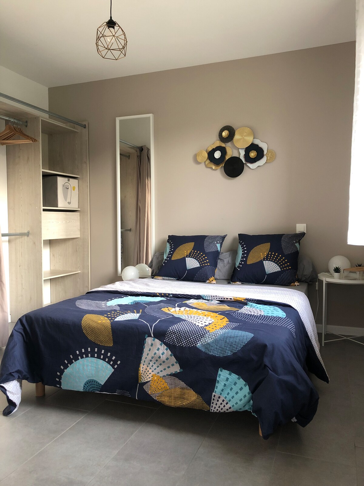 Hallo en welkom in onze gloednieuwe T3 die is ontworpen om alle gemakken te bieden die je nodig hebt tijdens het reizen Of je hier nu voor werk of voor een weekendje weg bent, wij bieden een rustige omgeving in een rustige en beveiligde residentie. Gelegen in het stadscentrum, winkels en diensten zijn in de directe omgeving (supermarkt, bakker, bank, medisch centrum...) Het tentoonstellingspark en de luchthaven op 5 km afstand Er zijn directe bussen naar de metro van Rennes.