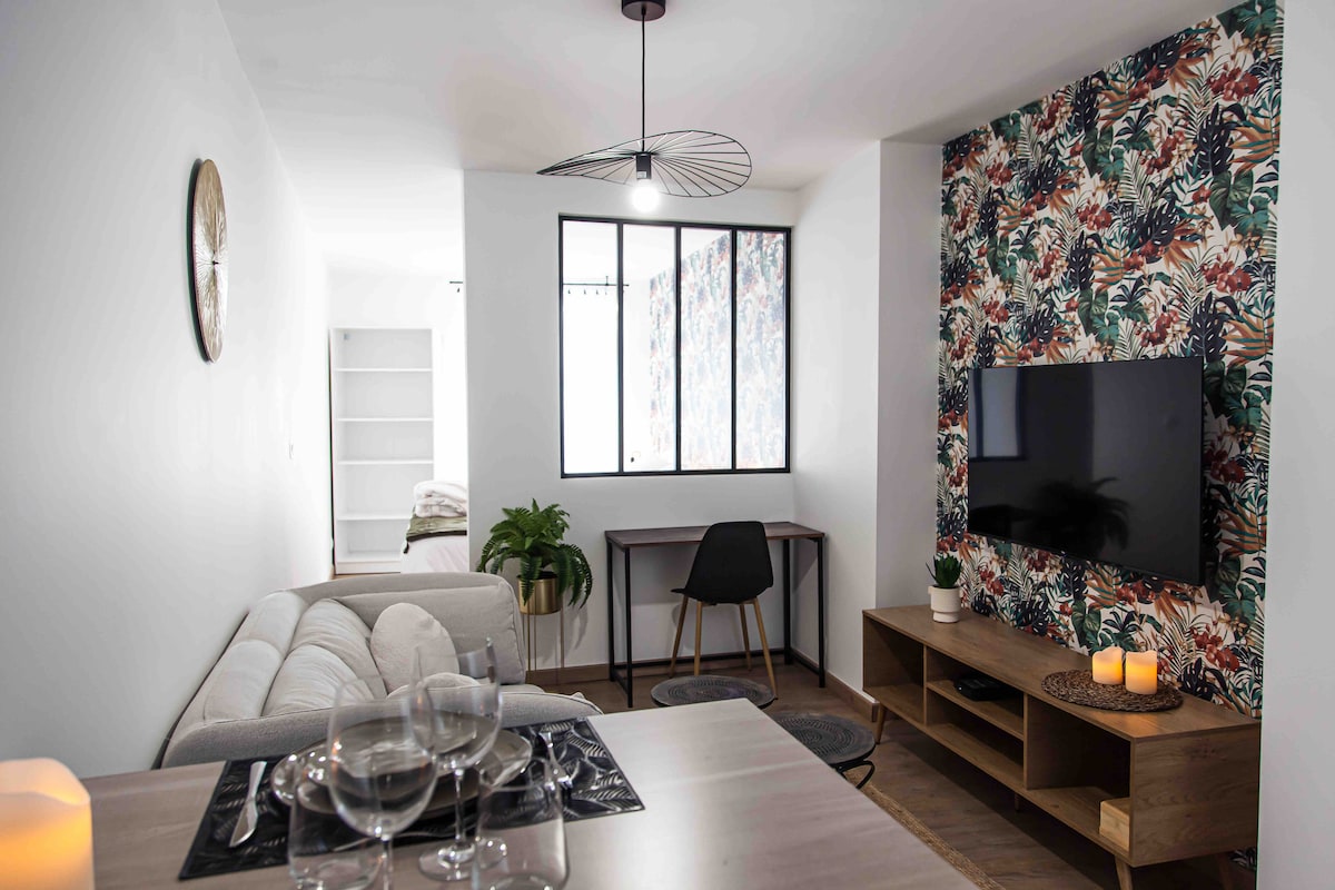 Au cœur de la ville, profitez de mon bel appartement chaleureux de 43 m², proche de tous commerces. Il est composé d'un grand séjour/salon, cuisine équipée (four, micro-onde, plaque vitrocéramique, grille pain, bouilloire…), chambre, salle de bain, douche, WC, lave-linge, Wi-Fi fibre, sticks de café, thé et sucre (cafetière Bosch). Stationnement gratuit à proximité dans la rue. Draps, serviettes et essentiels fournis (sauf gel douche). Arrivées anticipées et départs tardifs sous conditions.