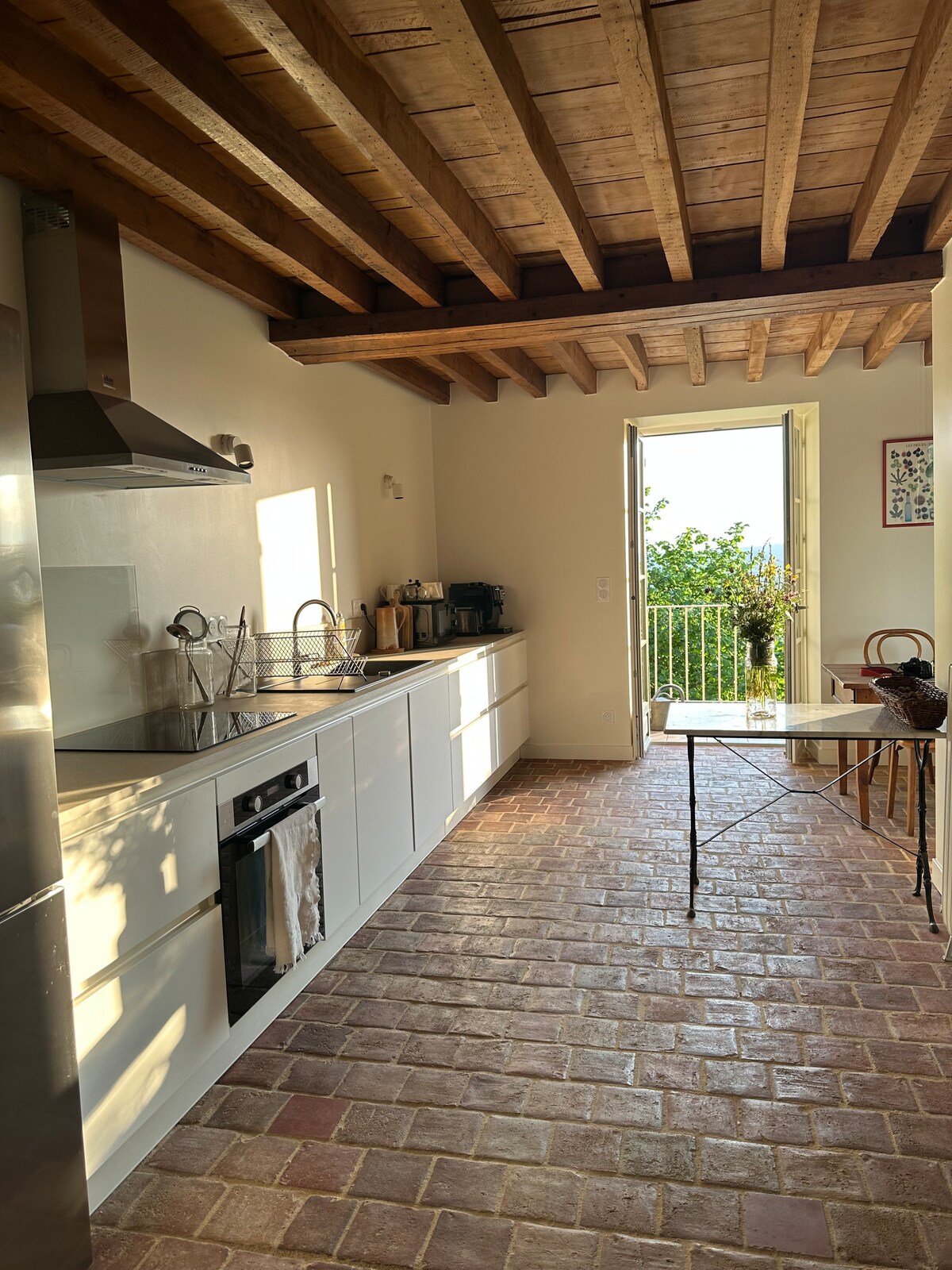 Huis op één verdieping met uitzicht op twee tuinen. Die in het zuiden is privé. Het zeer grote noorden wordt met ons gedeeld... als we de kleine kinderen hebben. Elke slaapkamer heeft een badkamer en toilet. Een gezellige plek om in de winter te genieten van de rust op de hoek van de pot. Comfortabel uitgerust voor de keuken. Kinderen zullen genieten van de ezels, portico en trampoline in de tuin.