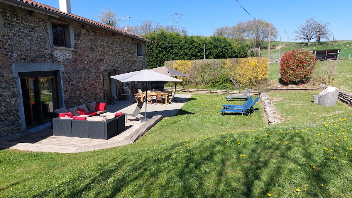 Dit grote traditionele Dauphin-gebouw is ideaal gelegen op 41 km van Lyon Centre, aan de route des Alpes of de Middellandse Zee, dicht bij de meren Bourget of Aiguelette, en heeft 3 slaapkamers (voor 8 personen). De tuin van 500 m2 is toegankelijk voor reizigers en is verbonden met de omheining van een vriendelijke binnenplaats met zijn haan Ideaal voor een ontspannende en verjongende tussenstop. Beddengoed en badlinnen zijn aanwezig. - uitchecktijd: 11.00 uur - geen feesten alsjeblieft