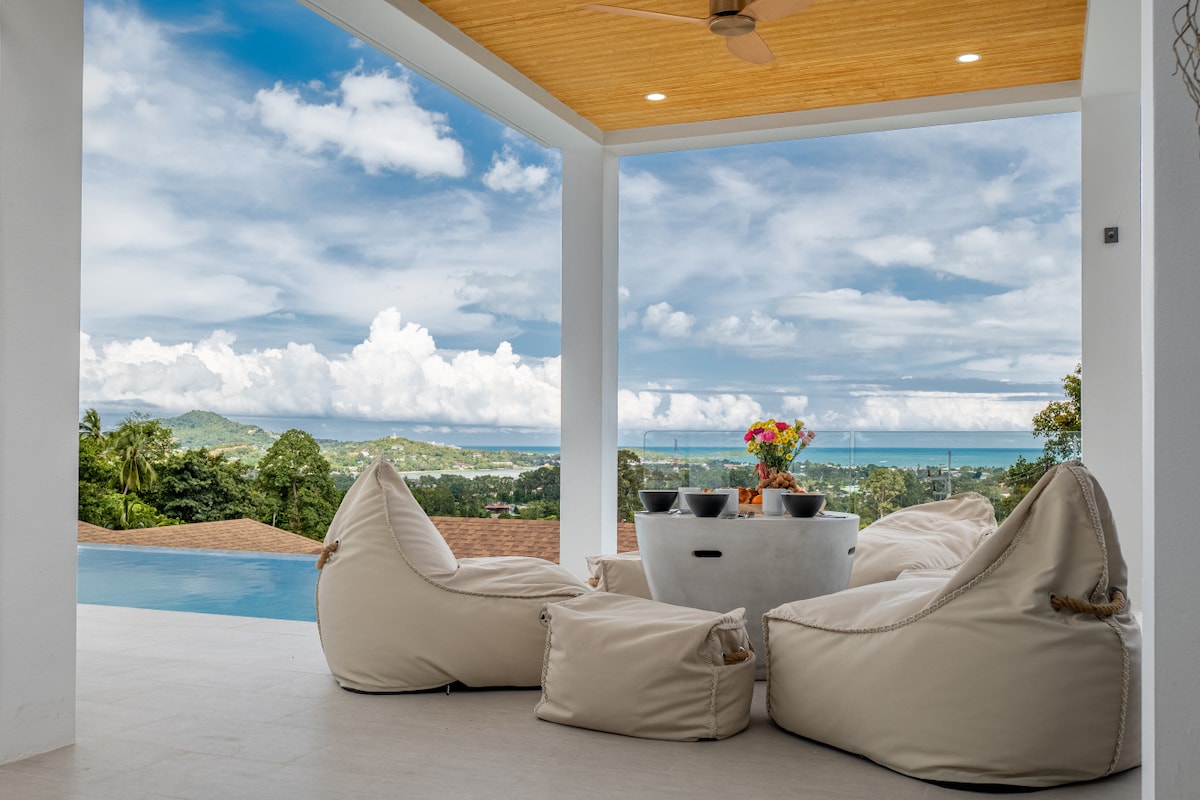Geniet van deze elegante villa met 4 slaapkamers, met een panoramisch uitzicht op zee, een eigen overloopzwembad en een stijlvolle speelruimte met pooltafel. Deze ruime retraite ligt op slechts 5 minuten rijden van Chaweng Beach en biedt een modern design, een volledig uitgeruste keuken, eigen badkamers en dagelijkse tropische zonsondergangen. Perfect voor gezinnen of groepen die op zoek zijn naar zowel ontspanning als plezier â met toprestaurants, winkels en uitgaansgelegenheden op slechts enkele minuten afstand.