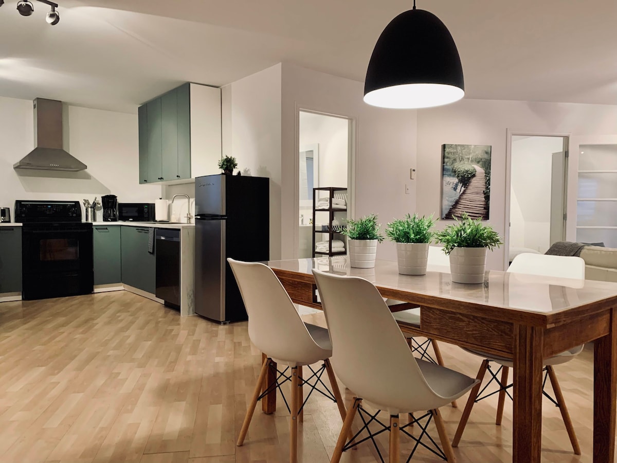 Mooi goed ingericht modern open appartement met 2 slaapkamers en volledig ingerichte keuken in het charmante oude Chelsea. Op loopafstand van het Gatineau Park, de bistro 's van het centrum van het dorp, boetieks, Nordik Spa en boerenmarkten. Buitenliefhebber kan hun wandeling beginnen of de langlauf-/sneeuwschoenpaden aan de overkant van de straat vanaf de airbnb. Voor de meer avontuurlijke, Camp Fortunes skigebied cross-country mountainbike paden, luchtpark zip-lijnen en slops liggen op slechts 5 minuten rijden.