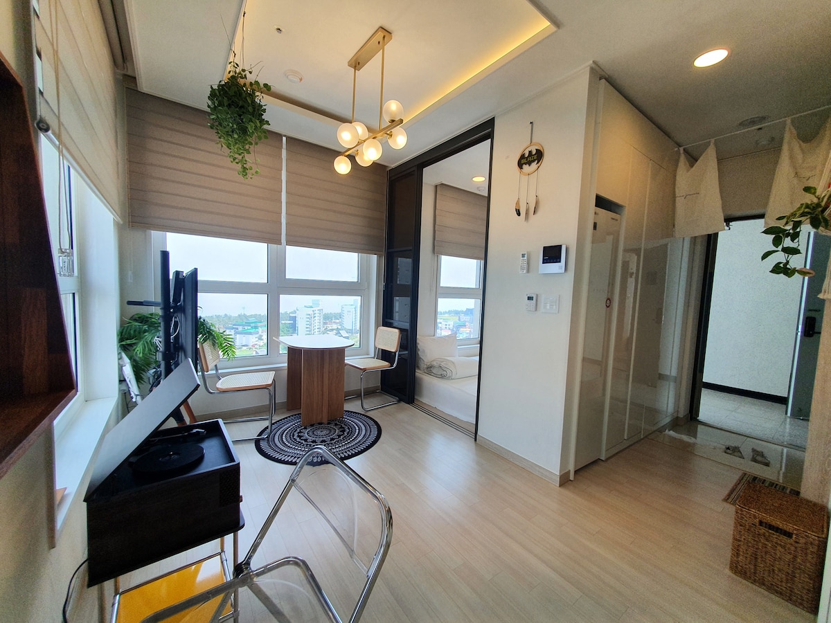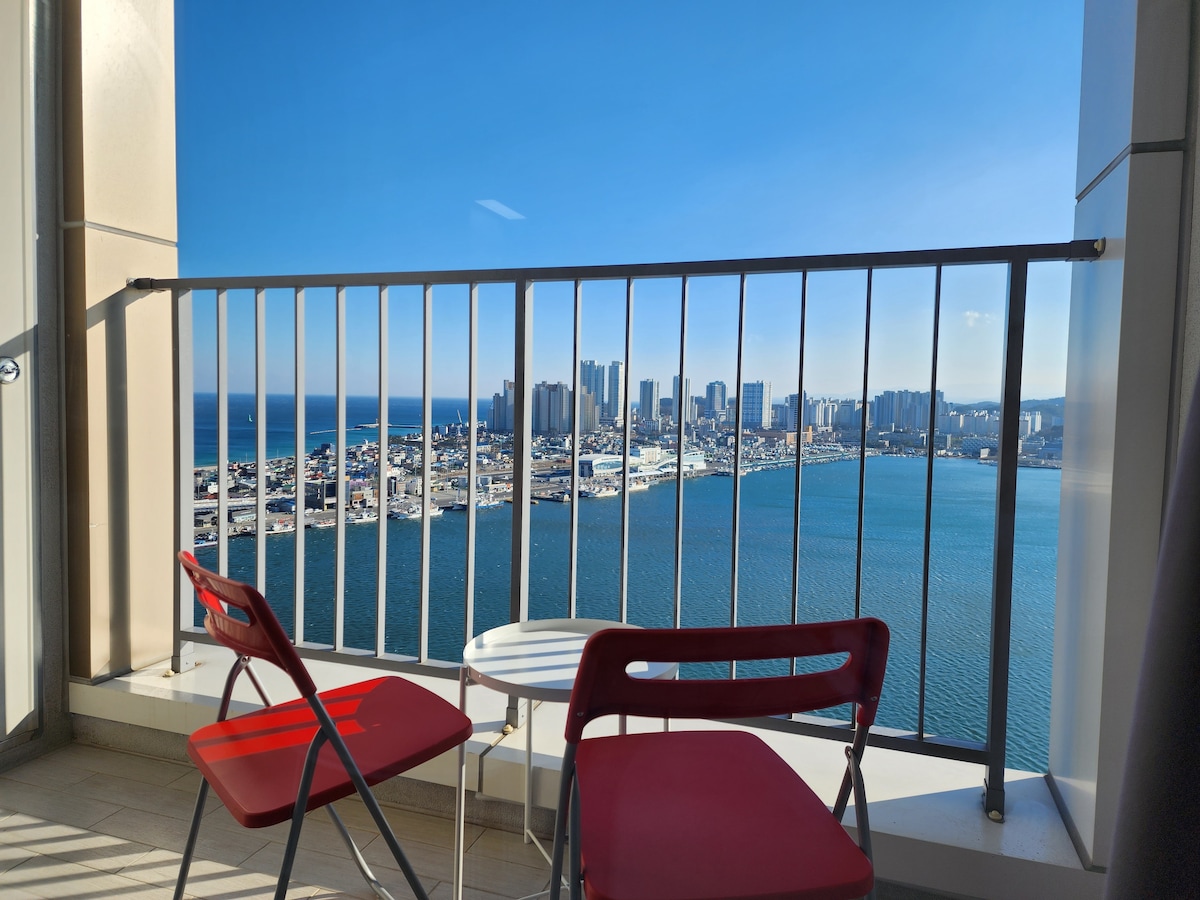 (Korting op opeenvolgend verblijf) Terras met uitzicht op de oceaan/5 minuten lopen van Jungang Market, gratis parkeren