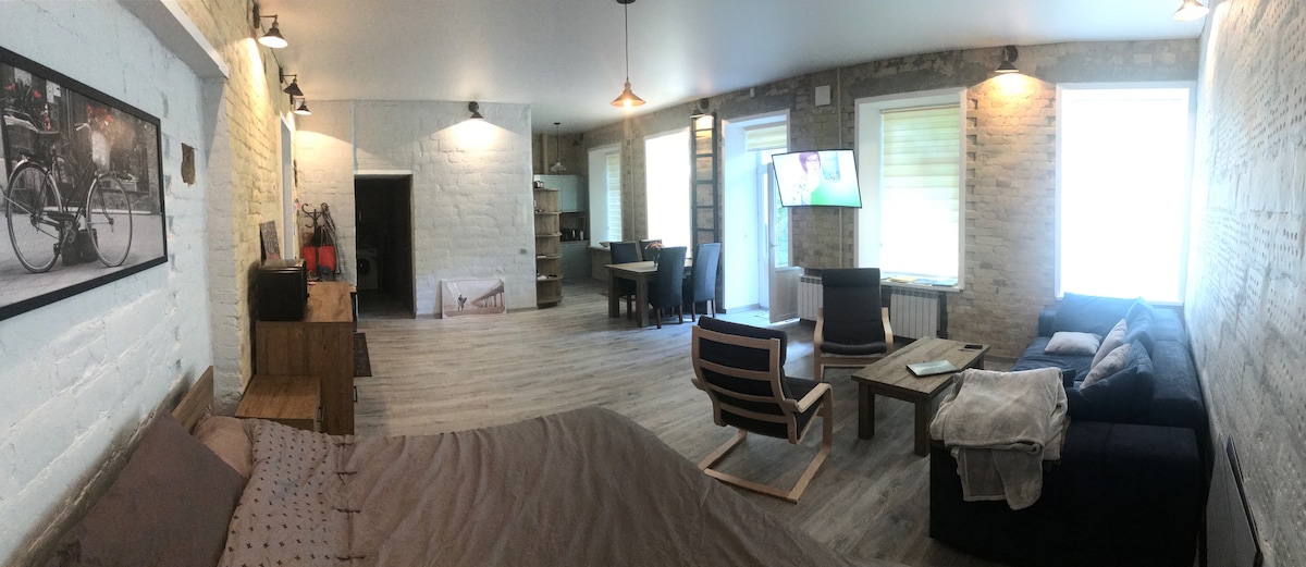 Deze industriële loft is gelegen in het hart van het historische centrum van Kiev, op 3 minuten loopafstand van het metrostation Olimpiyskiy stadion, op de 4e verdieping van een tsaristisch gebouw. Het is in 2021 gerenoveerd en het is spasmerig en comfortabel. Het is geschikt voor 2 personen maar maximaal 4 kunnen er in slapen. Het is ideaal voor jonge avonturiers en koppels. Het uitzicht op Kiev vanaf het balkon is geweldig!
