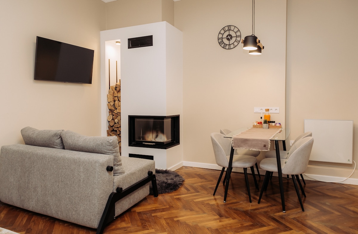 het appartement is gelegen in het centrum van de stad, in een oud Oostenrijks huis, met hoge plafonds en een open haard ondanks de centrale ligging - er is een plein in de buurt en het is vrij rustig Veel culturele bezienswaardigheden op loopafstand