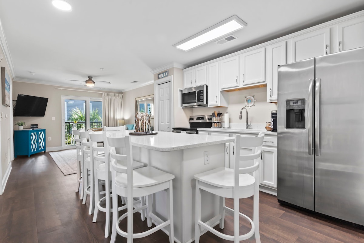 Stap recht op het zand! Dit Sea Oats-appartement op de eerste verdieping (3 slaapkamers/2 badkamers) biedt een spectaculair, onbelemmerd uitzicht op de oceaan. Ontspan bij het zoutwaterzwembad of op het strand op slechts een steenworp afstand. Geniet van comfortabele kustmeubels, moderne apparaten, een wasmachine/-droger in de accommodatie, snelle wifi en smart-tv’s. Inclusief 2 parkeerplaatsen en op korte rijafstand van de winkels in Cherry Grove. Het ultieme zorgeloze gezinsuitje – je hoeft de auto niet in te laden en niet te vechten om een parkeerplaats op het strand, want je bent er al!