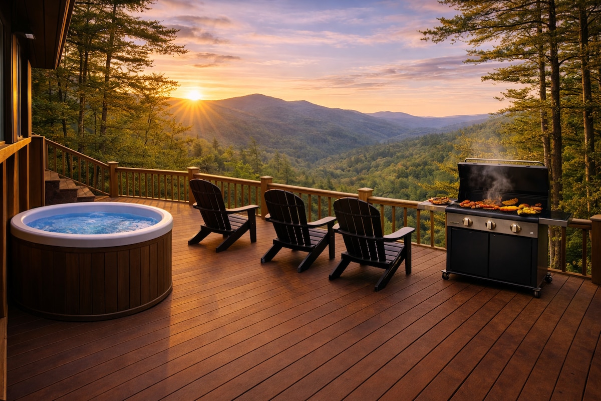 Welkom bij High Hopes Cabin, een romantisch uitje in de Blue Ridge Mountains. Op slechts 10 minuten van Blue Ridge en 15 van Ellijay, is deze moderne 2BR/2.5BA retraite ontworpen voor koppels die op zoek zijn naar luxe, afzondering en onvergetelijke uitzichten. Bekijk de zonsopgang vanaf elk terras, geniet van het privébubbelbad onder de sterren en ontspan bij de houtkachel. Of het nu gaat om een jubileum, huwelijksreis of een broodnodig uitje, deze hut vormt het decor voor onvergetelijke herinneringen.
