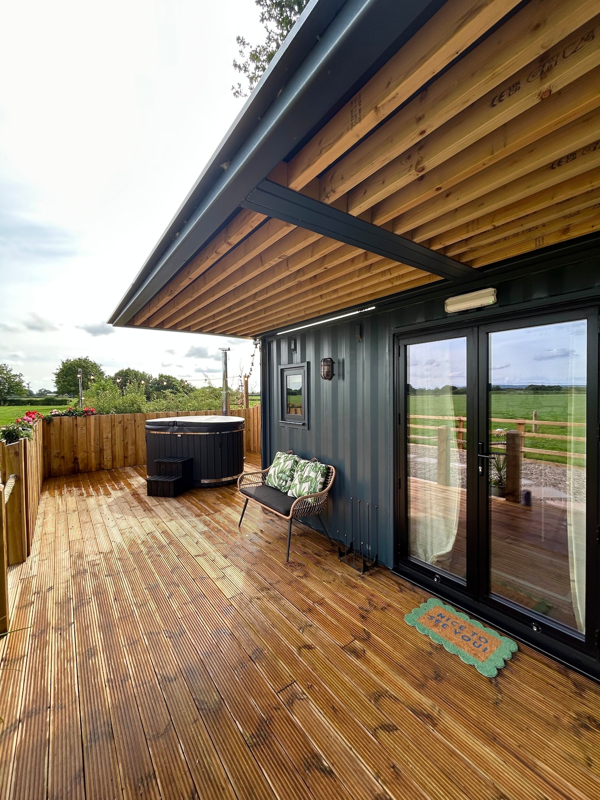 Een prachtige, op maat gebouwde herdershut met uitzicht op het platteland in het landelijke Cheshire, met uitzicht op het Llangollen-kanaal, in de buurt van het middeleeuwse marktstadje Nantwich. Traditioneel aan de buitenkant, modern en eigentijds aan de binnenkant. Een eigen bubbelbad voor exclusief gebruik het hele jaar door naar wens. Een overvloed aan uitstekende pubs in de buurt – of je nu uit eten gaat of langskomt voor een drankje tijdens een wandeling langs de gracht. Zie onze gids op ons Airbnb-profiel voor informatie over uit eten gaan en dingen om te doen in de buurt.