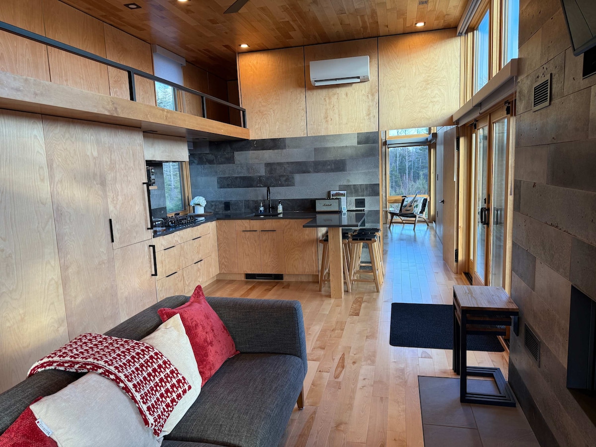 Note: 25% off on stays of 2 nights between Mon to Wed. The Cabin at The Woodlots is located minutes from the Atlantic Ocean in the seaside community of Chester Basin. Our modern cabin is surrounded by acres of Acadian forest with stunning views of the natural landscape in all directions. A large wood-fired/electric hot tub is tucked in out front, while Adirondack chairs and a fire pit provide the perfect place to relax and keep warm. Tranquil Croft Lake is a short stroll through the woods.